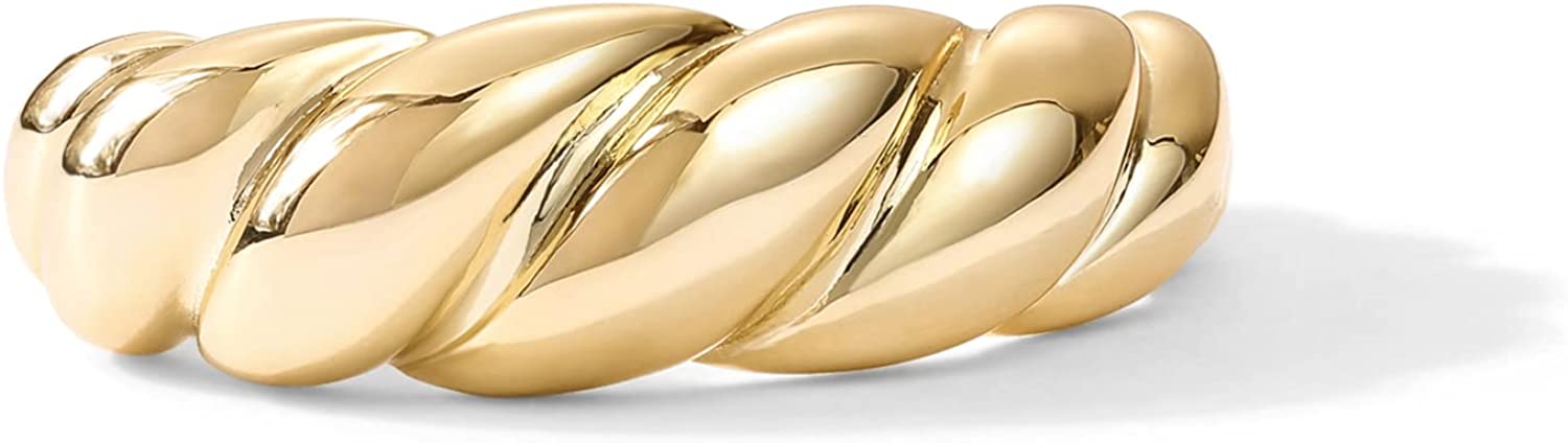 PAVOI 14K Gold Plated Croissant Dome Ring | Twisted Braided Gold Plated Ring | Chunky Signet Ring for Women