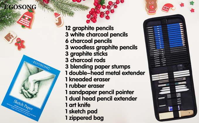 - ✅PROFESSIONAL ART SUPPLIES DRAWING SET – Push the boundaries of your artistic expression and take your art to the next level with EGOSONG drawing supplies – a complete artist pencils drawing kit. This art supplies drawing set comes with drawing pencils and charcole pencils that give you endless possibilities to mix and match different textures to create unique styles. Embark on your creative endeavors to discover a whole new world with this art set.
