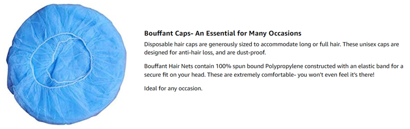 • MEDICAL NATION BOUFFANT CAPS: Nurses cap is a necessary piece of personal protective clothing for any clinic, hospital, laboratory or exam room. These head covers cover your hair maintaining proper hygiene safety. Size: 24". Quantity: 100 caps.