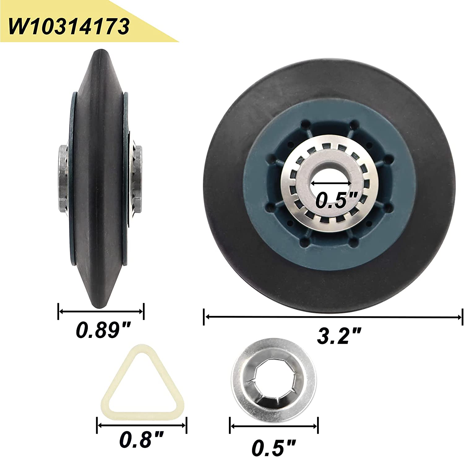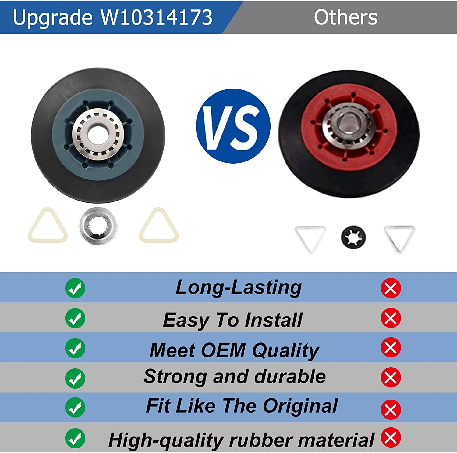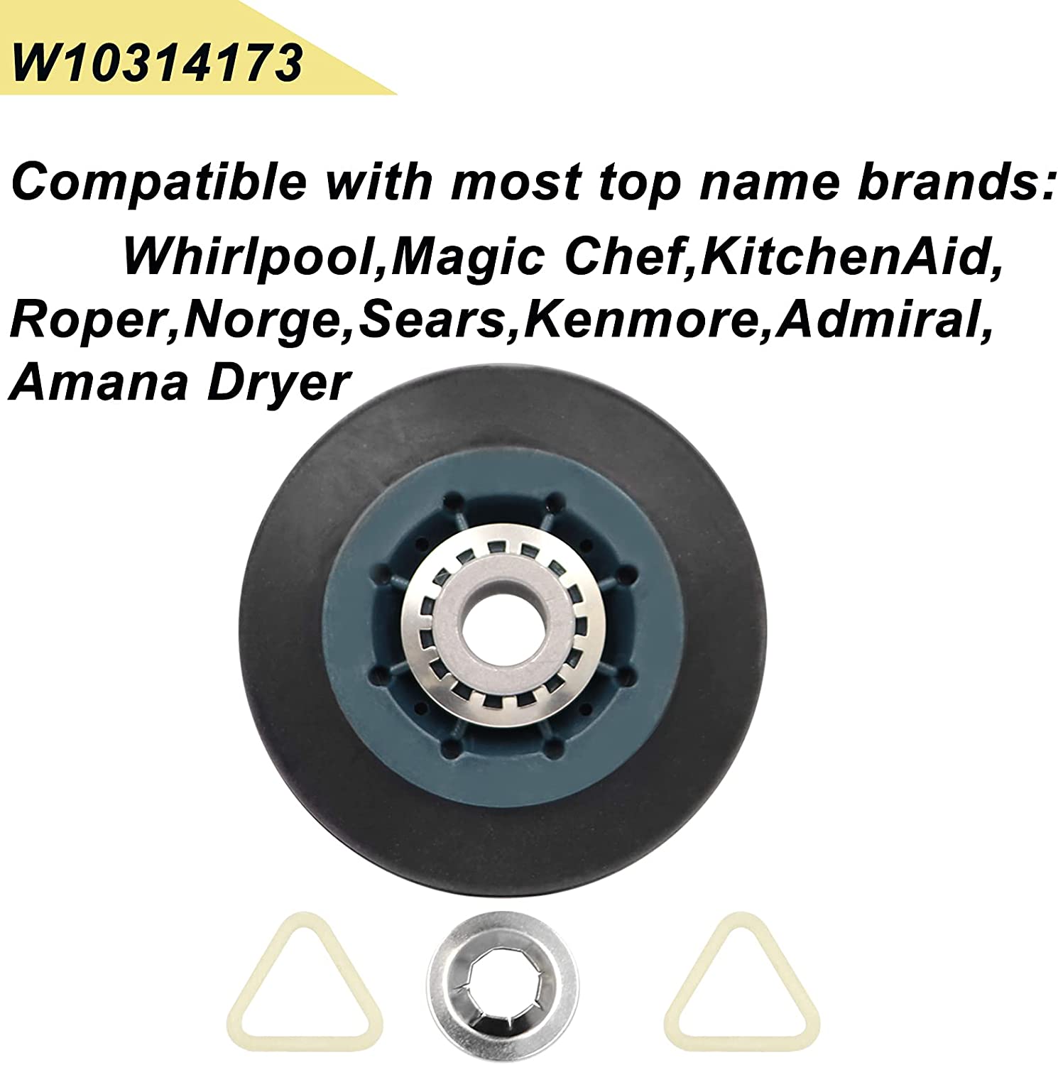 • High Quality:W10314173 is made of high-quality metal and rubber.It has undergone long-term testing and inspection by the manufacturer. w10314173 complies with OEM standards, it is quiet and durable can perfectly fit your dryer, please rest assured to buy and use.