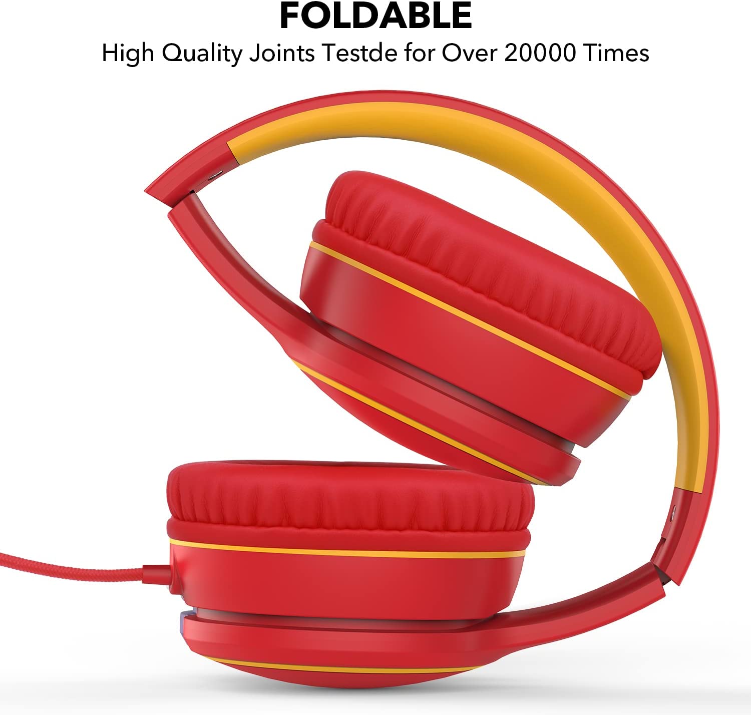 RORSOU R10 headphones with microphone in bright colors are built meticulously with strong and sturdy plastic for long-lasting resilience and durability. Premium 4.9 ft (1.5m) nylon braiding cord doesn’t tangle or kink, suitable for adults and Children. Lightweight and foldable design make these wired headphones easy to put into your package and take along anywhere.