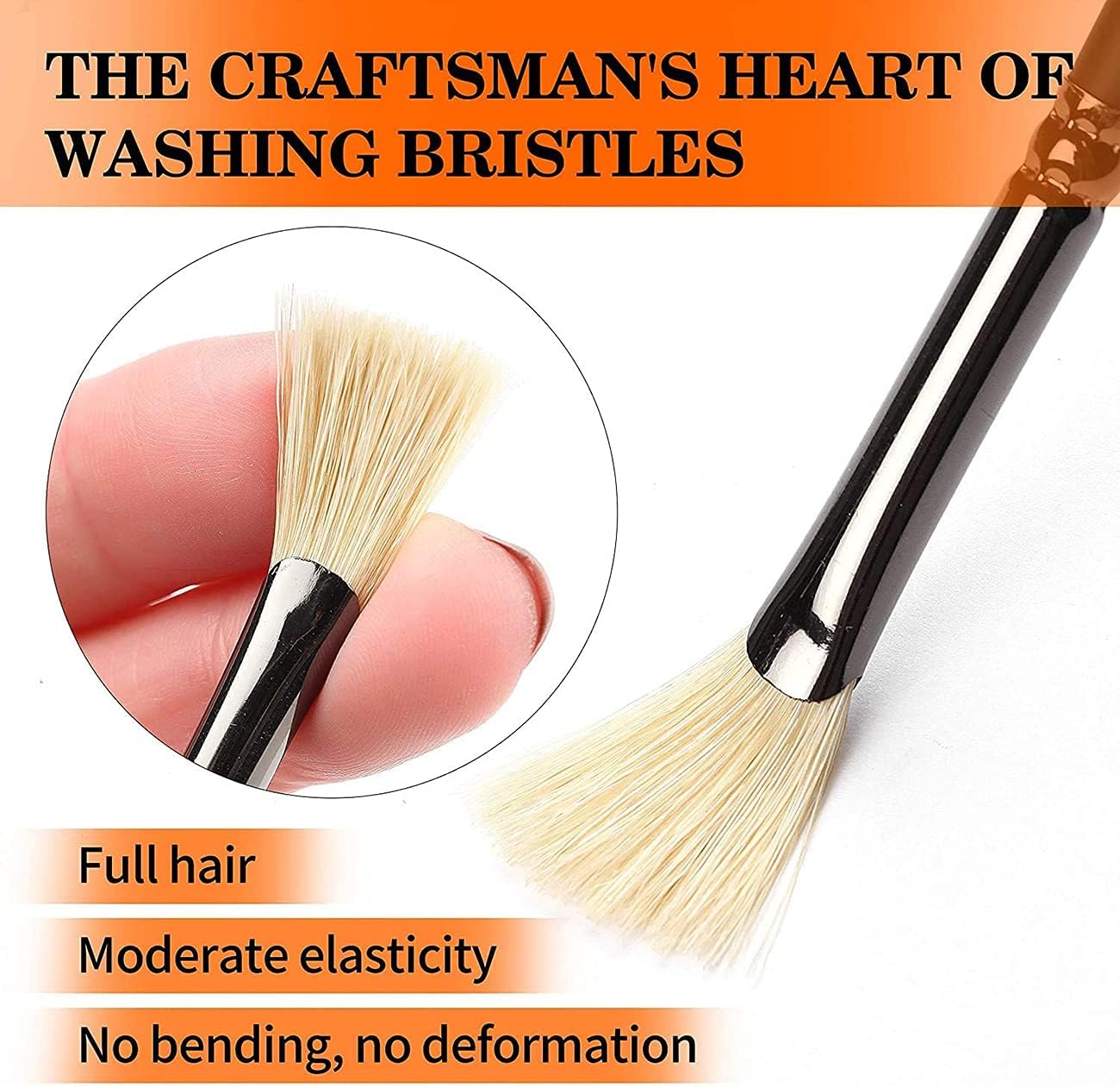 • ❤HIGH QUALITY HOG BRISTLES NO SHEDDING:The paint brush set uses 100% pure hog bristle brushes are secured with high grade copper crimped ferrules,ensuring the hairs won’t be left on the canvas while you are painting.bristles can twist, rub, without sticking together. It is mostly used for painting with thick brushstroke texture. It will not appear frizzy after repeated use.