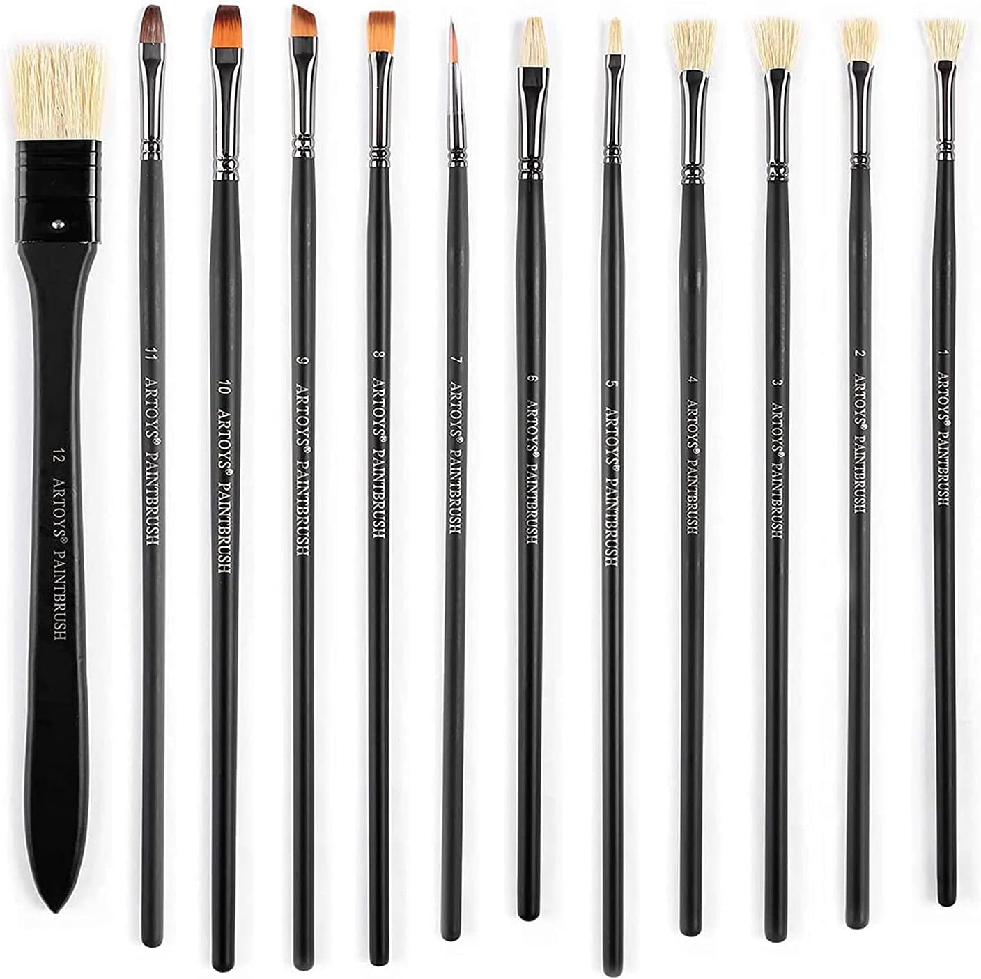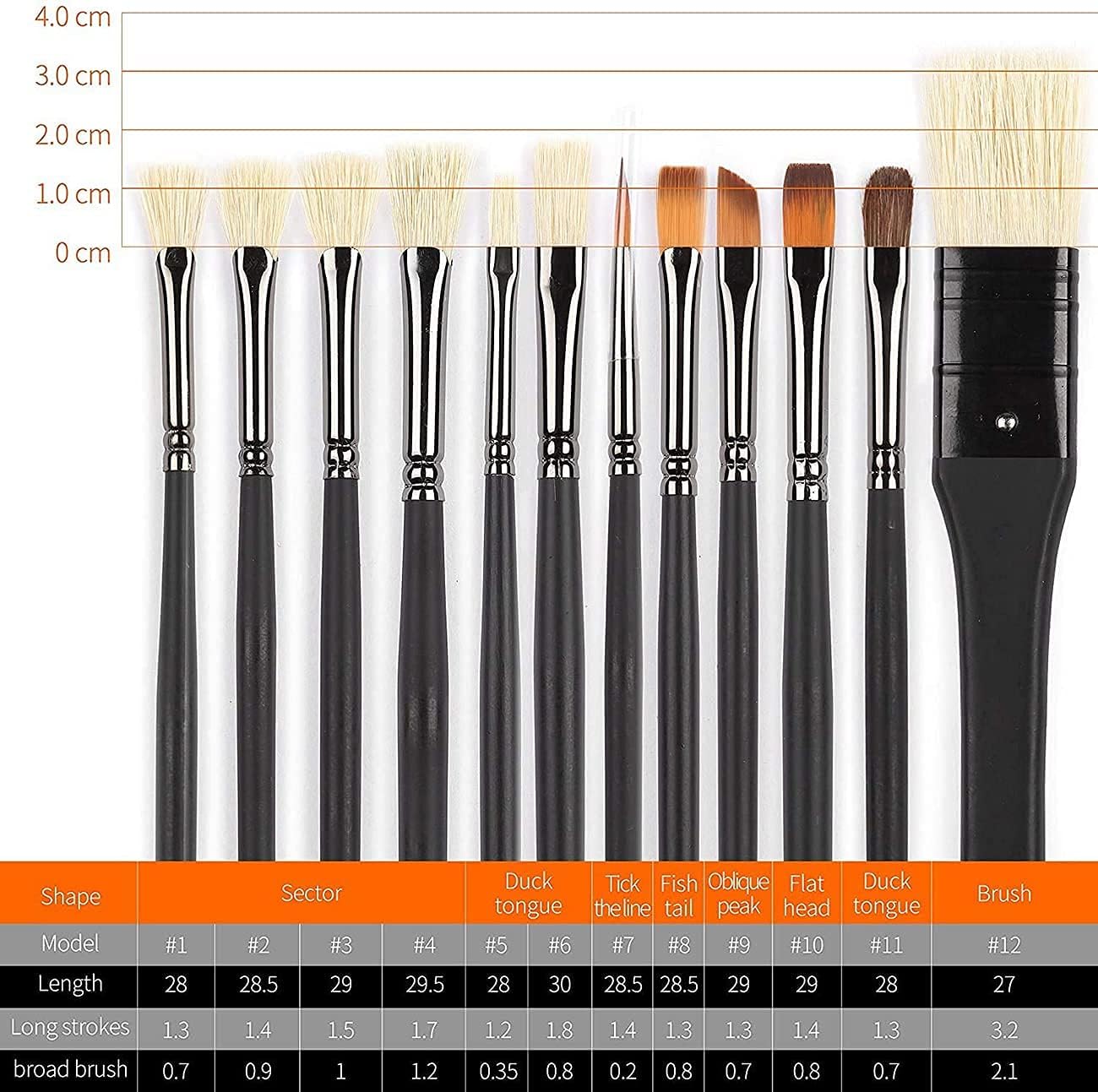 Paint Brush Set 12pcs, Natural Hog Bristle Long Handle Professional Artist Brushes Anti-Shedding, Art Supplies for Kids and Adults for Acrylic and Oils Painting, Watercolor, Face Painting Craft