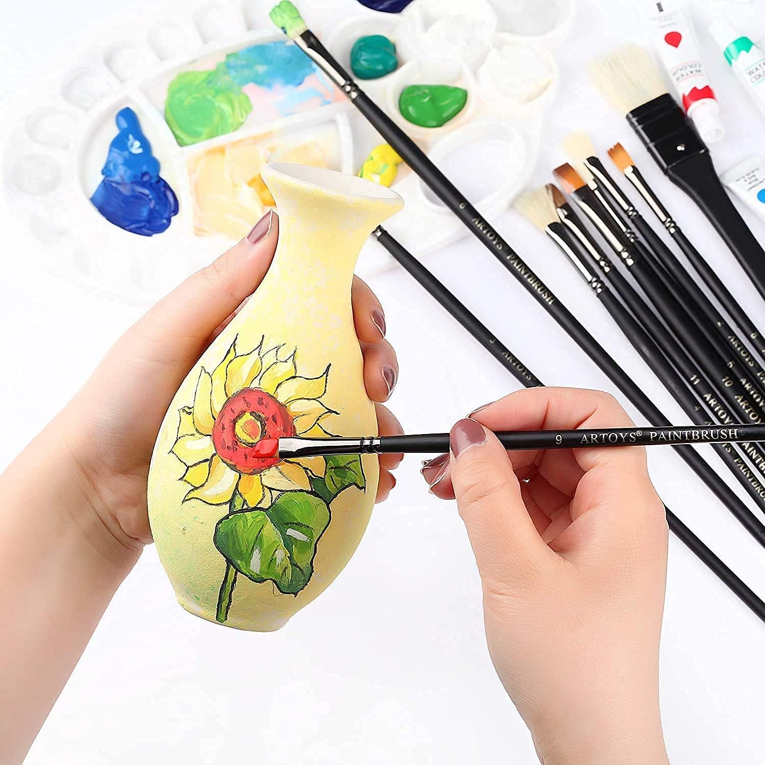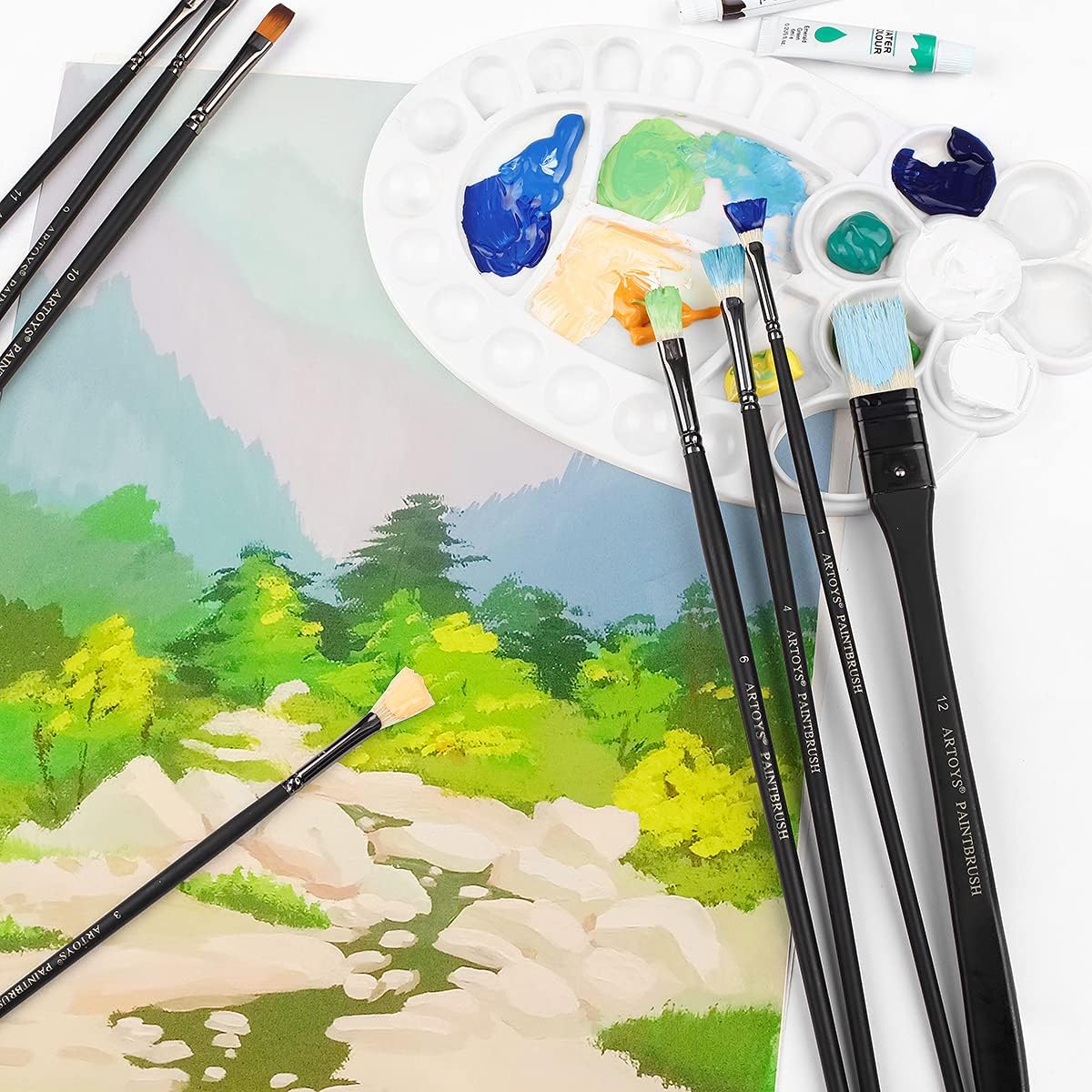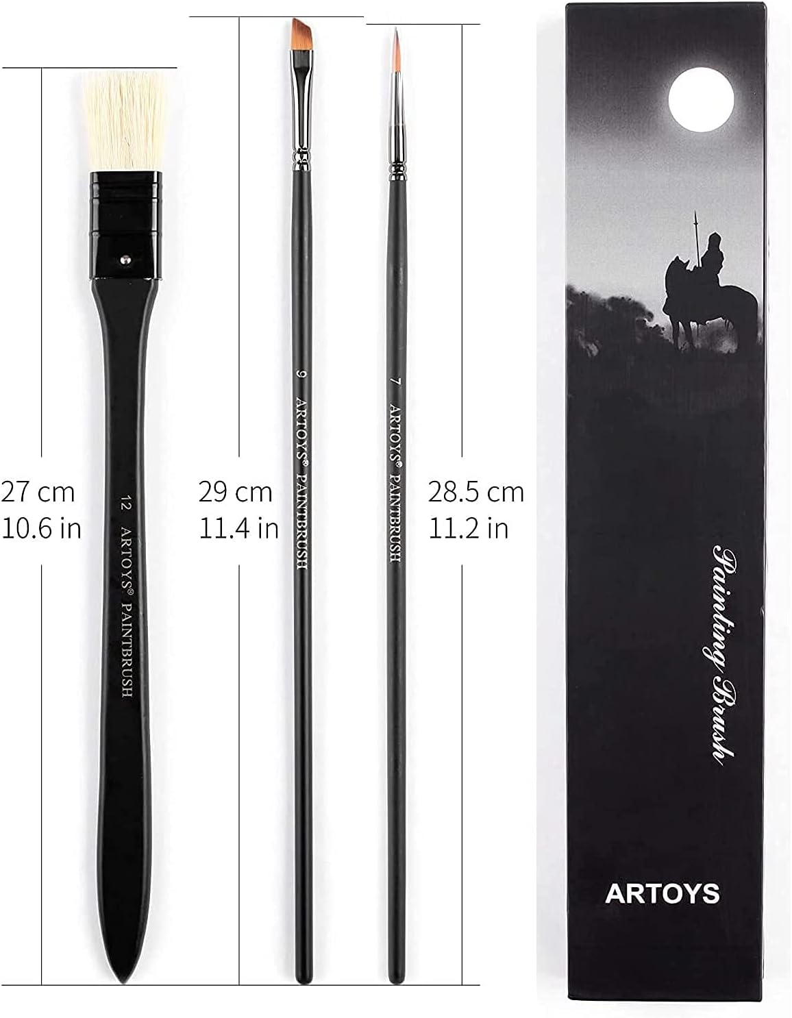 • ❤VERSATILE PAINT BRUSHES:The 12 long handle brushes have a luxurious Brush Selection. Brushes of different shapes and lengths can meet all your painting needs and give you a perfect experience.This artists paint brush set works in all mediums.It has a combination of wide uses and low cost that make it attractive painting brushes set to guys who has great fun in watercolor, acrylic and oil painting, miniatures, Tempera painting ,decorations, models, figurines and face painting.
