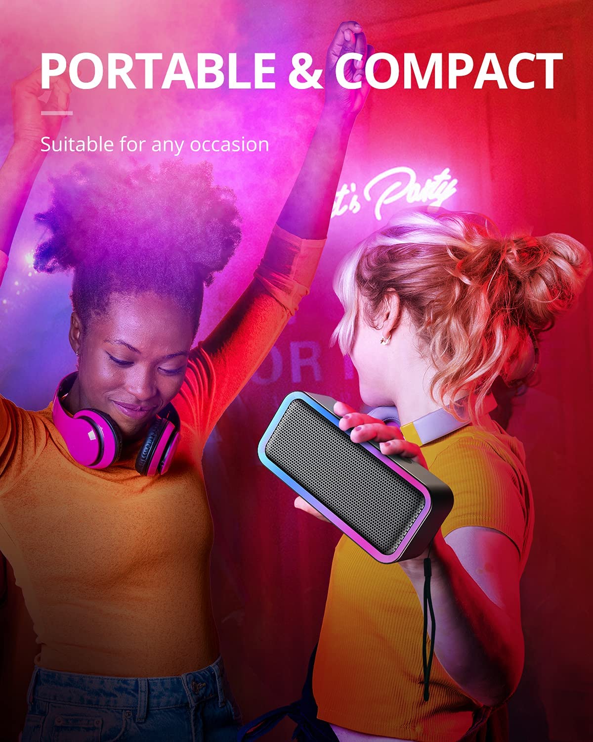 • SHOCKING Hi-Fi LOUD SOUNDS: The bluetooth speaker equips with 10W of stereo full-range drivers speaker and advanced digital signal processor, which pumps out crisp treble, detailed mids bass, deliver shocking sound without distortion even at any volume.