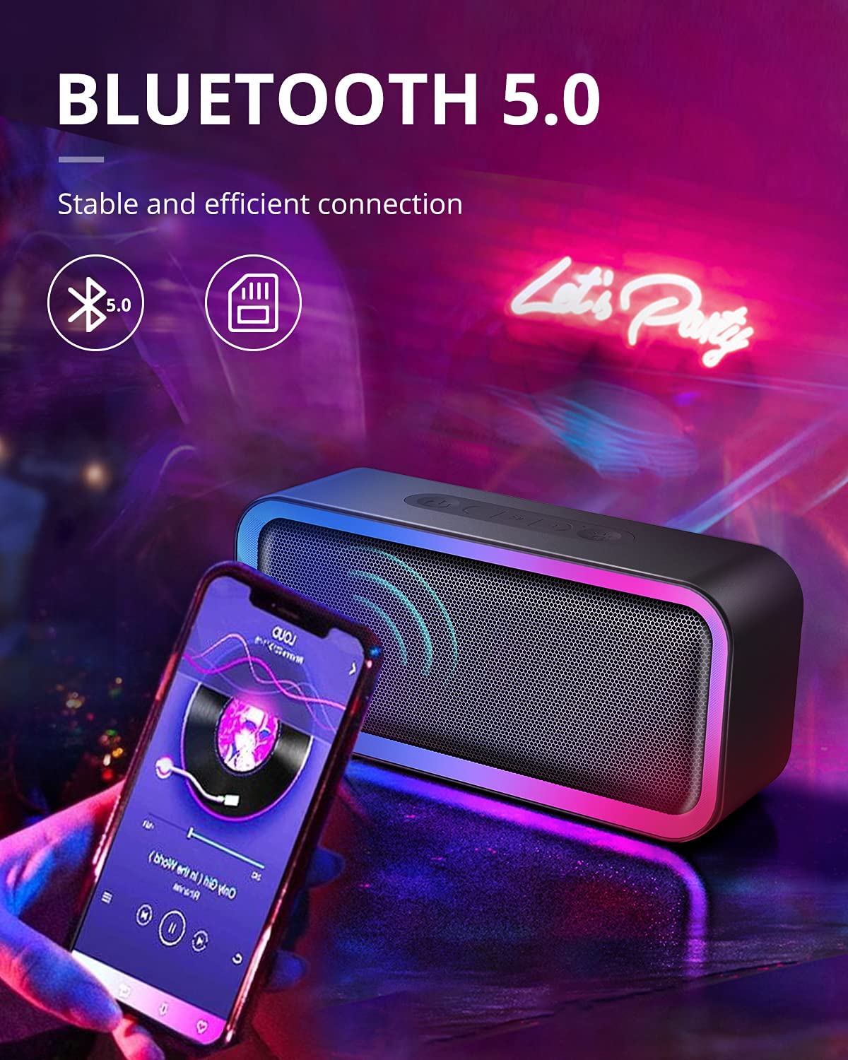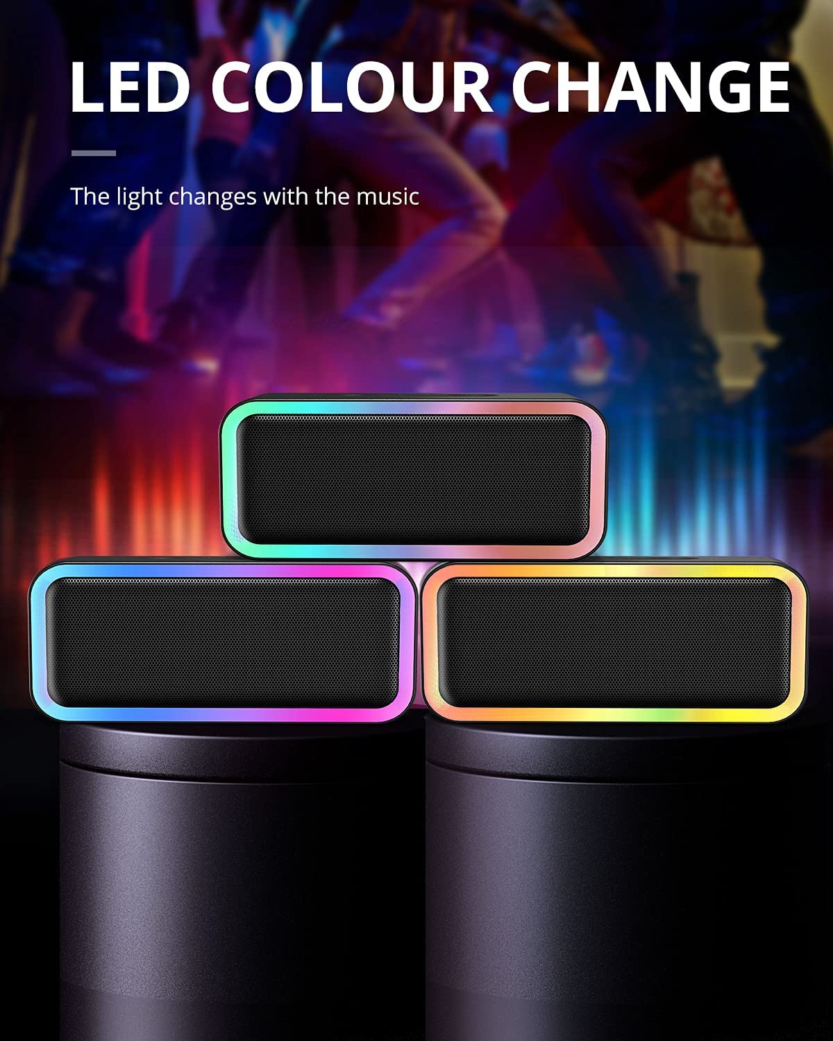 • RGB COLORFUL LIGHT WIRELESS SPEAKER: The wonderful light react and phase in time with the beat. You can enjoy the LED light show when you listen, with a next-level listening experience. You can change the mode of the light by pressing the button on the top of the speaker, It applies to video, your games, parties, bars, backyard BBQ Feast, Birthday Party, Family Gatherings, Holiday’s atmosphere, etc.