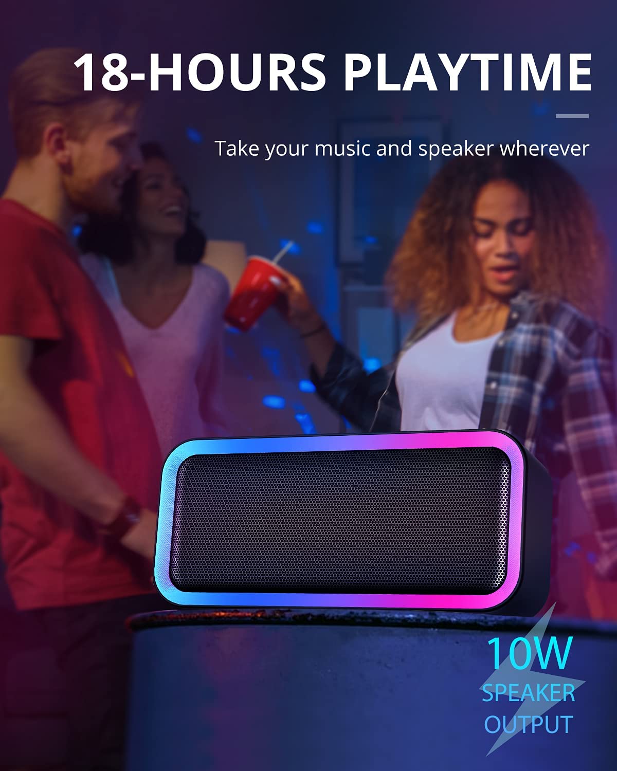 Kunodi Bluetooth Speaker, Bluetooth 5.0 Wireless Portable Speaker with 10W Stereo Sound, Party Speakers with Ambient RGB Light,18-Hour Playtime,IPX5 Waterproof Speakers for Outdoors, Travel(Black