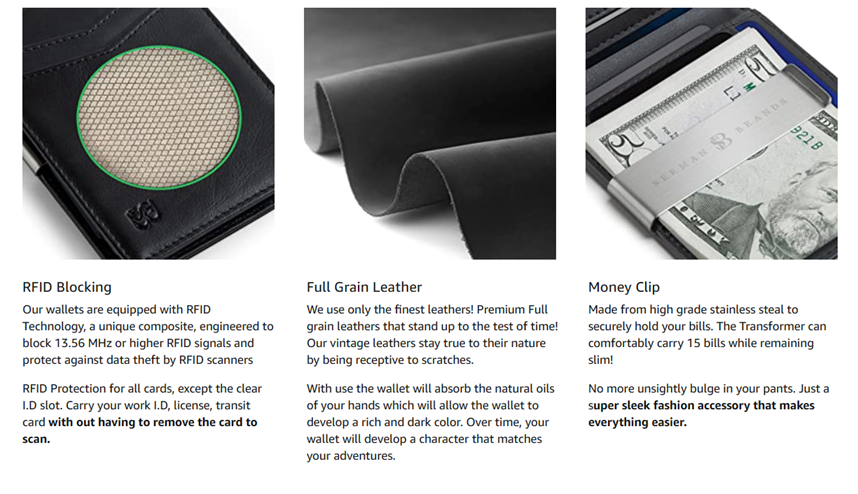 SECURITY. SAFETY. PRIVACY. - Our wallets are equipped with advanced RFID SECURE Technology, a unique metal composite, engineered specifically to block 13.56 MHz or higher RFID signals. Our quality RFID material protects the valuable information stored on RFID chips from unauthorized scans. Feel safe because your information is protected!