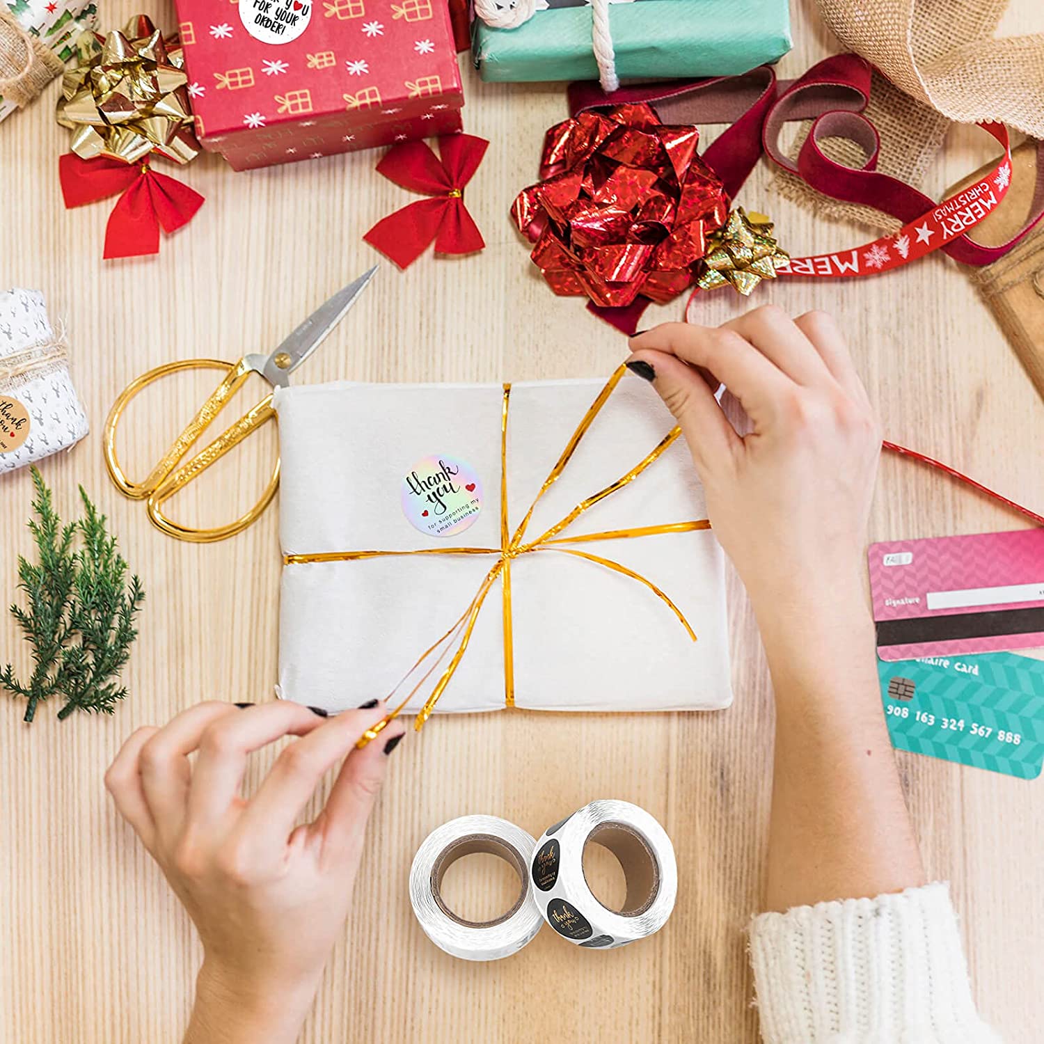?Small Thank You Stickers: Each round circle sticker measures 1 inch in diameter, proper size for you to stick onto various wrappings. These adhesive business stickers can be applied to seal gift cards or gift bags on festive occasions, such as Christmas, Thanksgiving, New Year and birthdays etc.