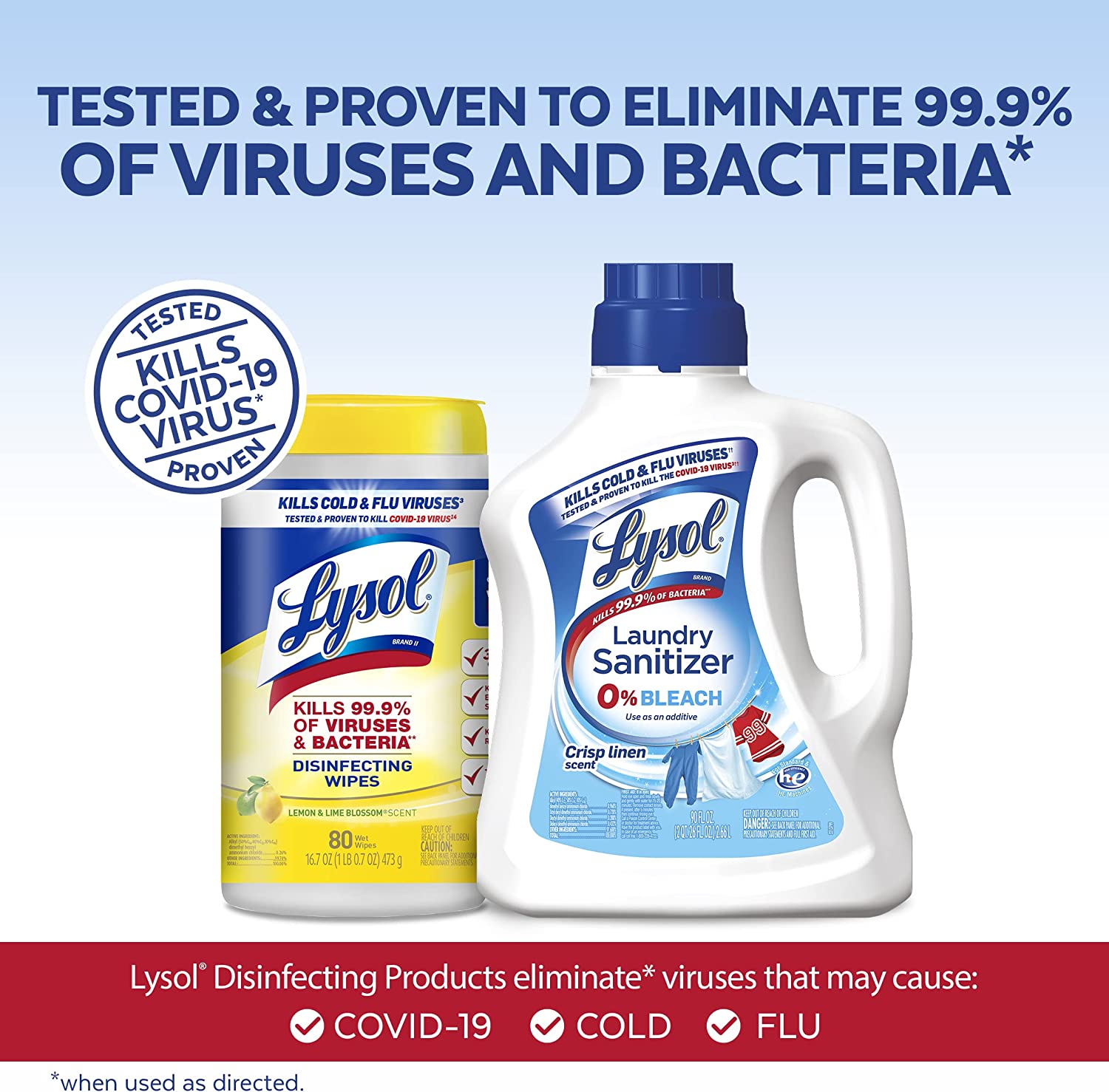 - Lysol Laundry Sanitizer Additive: Tested & Proven to Kill COVID-19 Virus* (*Kills SARS-CoV-2 during pre-soak conditions in 5 minutes), EPA Reg #777-128