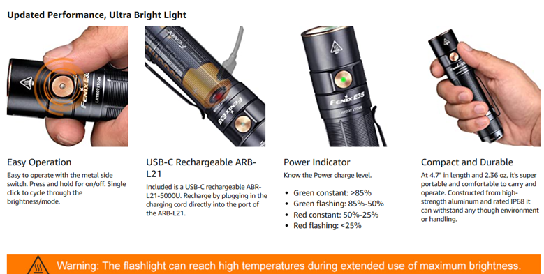 Included Components | Fenix E35 V3.0, LumenTac Organizer |