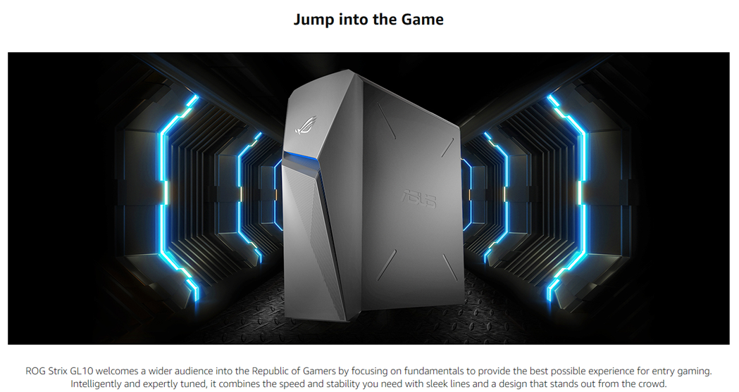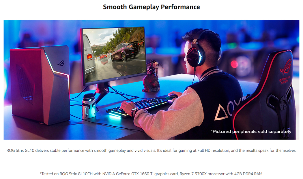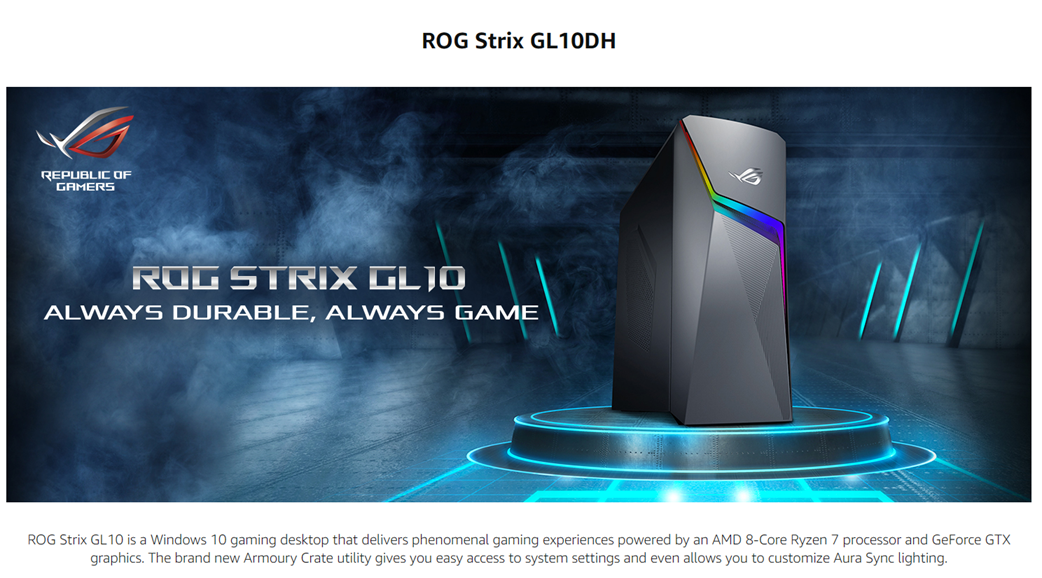 ROG Strix GL10DH Gaming Desktop PC, AMD Ryzen 7 3700X, GeForce GTX 1660 Ti, 16GB DDR4 RAM, 512GB SSD, Wi-Fi 5, Windows 10 Home, GL10DH-AH762