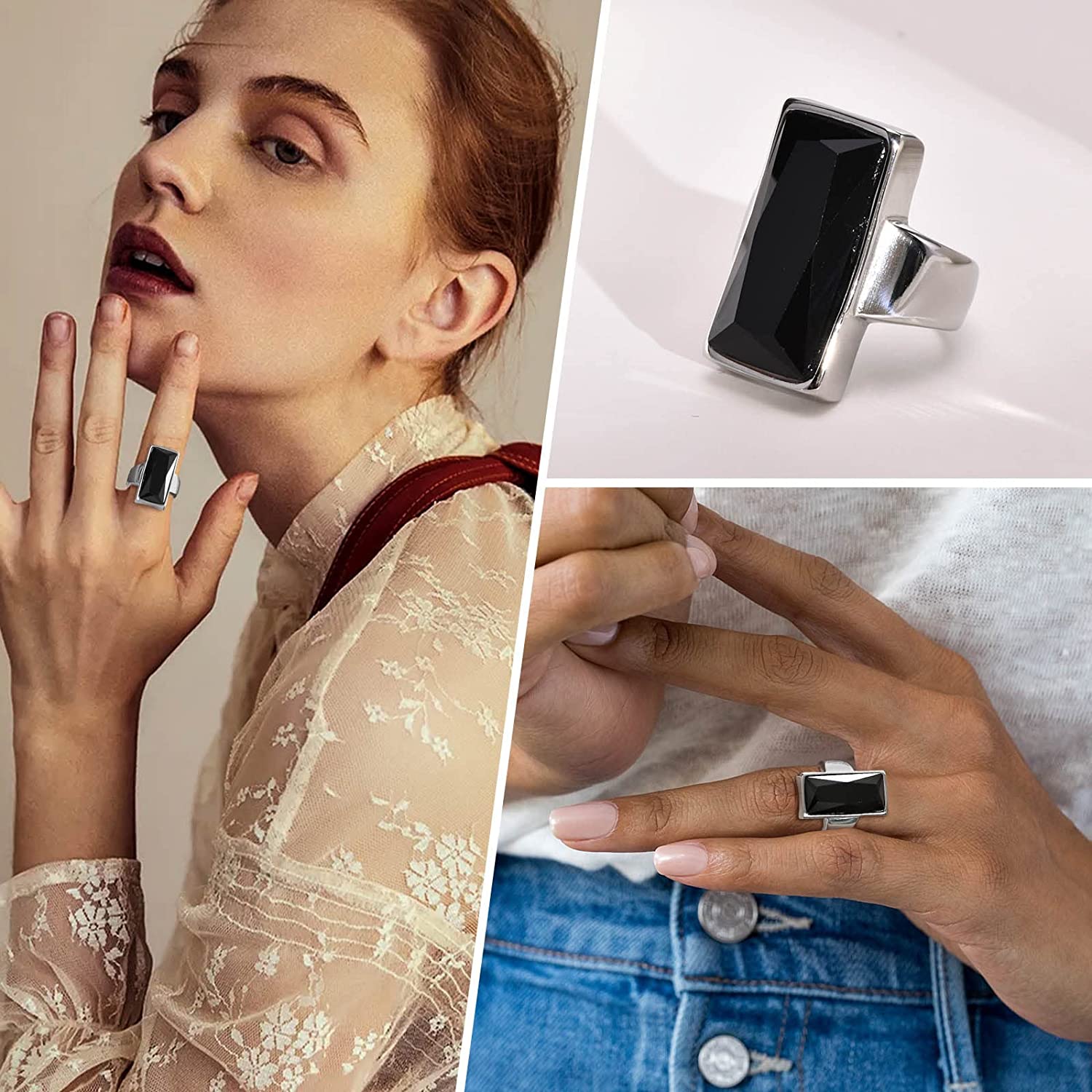 VNOX Stainless Steel Gold Plated Rectangular Black Glass Crystal Ring for Women
