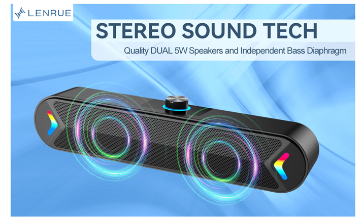 LENRUE Computer Speakers,Wired USB-Powered PC Speakers with 10W Stereo Sound,Sound-bar Speakers for PC Desktop Computer