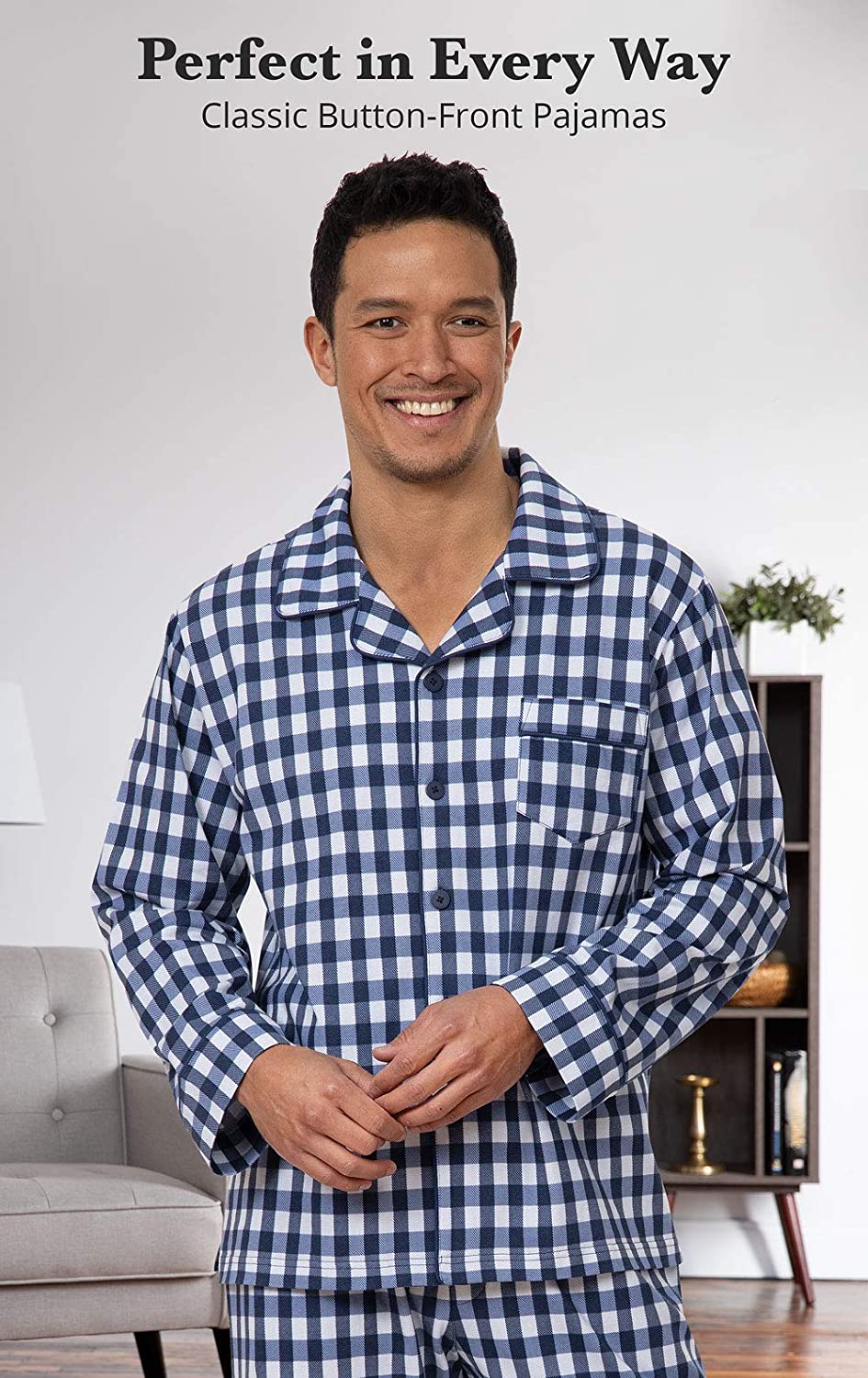• Breathable Cotton - Men's pajamas are comfortable all year long thanks to breathable cotton; Stay comfy and warm without overheating in lightweight cotton fabric that wears and washes well; available in long sleeve or short sleeve styles.