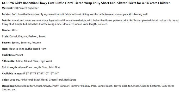 • Features: Cute and refreshing casual summer style, layered and ruffle hem design, with bohemian pattern print. High elastic waist makes this pleated circle skirt fit and beautiful. Flared swing aline silhouette, above knee length, no lined.