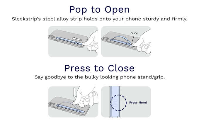 Don’t let your phone slip from your fingertips. Say goodbye to dropping your phone with a stylish SleekStrip’s Grip Strap.