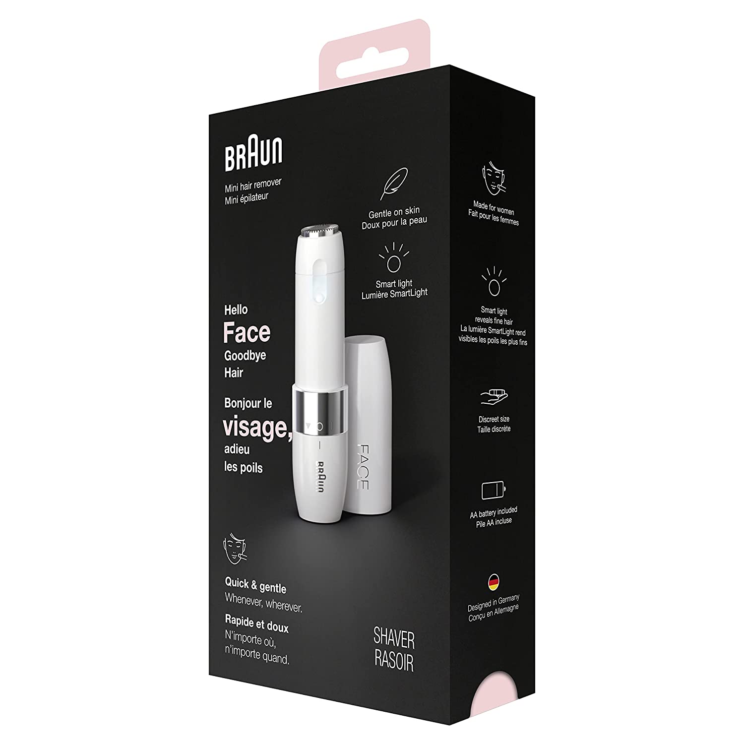 Braun Mini Hair Remover, Electric Facial Hair Removal for Women, Quick & Gentle, Finishing Touch for Upper Lips, Chin & Cheeks, for Easier Makeup Application, Ideal for On-the-Go, with Smartlight