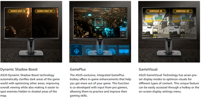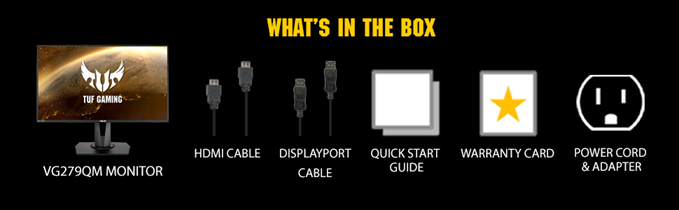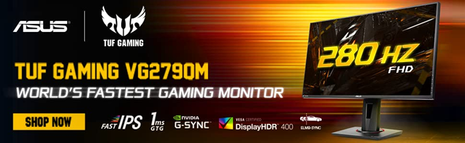 The 27” ASUS TUF Gaming VG279QM features Fast IPS technology which enables 1ms (GTG) response time for sharp gaming visuals with high frame rates at 280Hz refresh rate (overclocked). Enjoy a super-smooth gameplay with ASUS-Exclusive ELMB Sync Technology which enables motion blur reduction and adaptive sync technology to be used simultaneously.