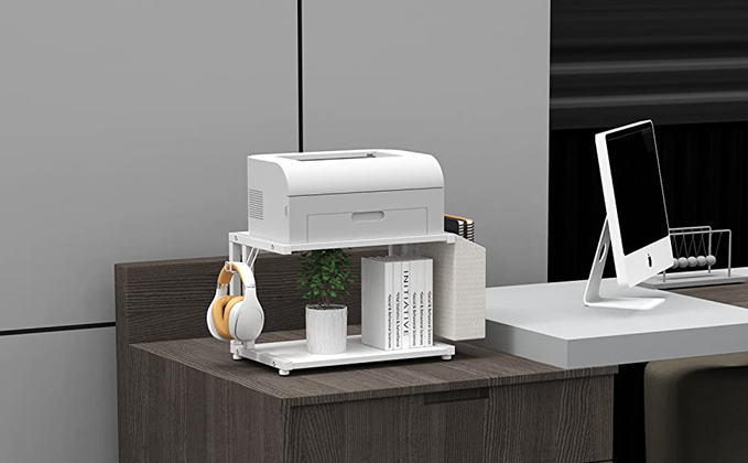 - 【SPACE SAVING】The 2 tier printer stand can be used as a desktop shelf or as an under desk organizer, and also provide an additional Storage Bag. Storage bag will help organize your working space at home or office more efficiently.