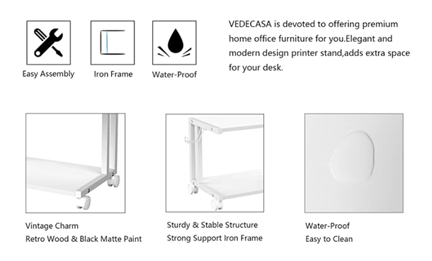 - 【STABLE STRUCTURE & DURABLE】We designed our printer stand with premium iron steel frame and thick wood partical wood which make the structure more stable, and it can easily hold up to 65lbs.