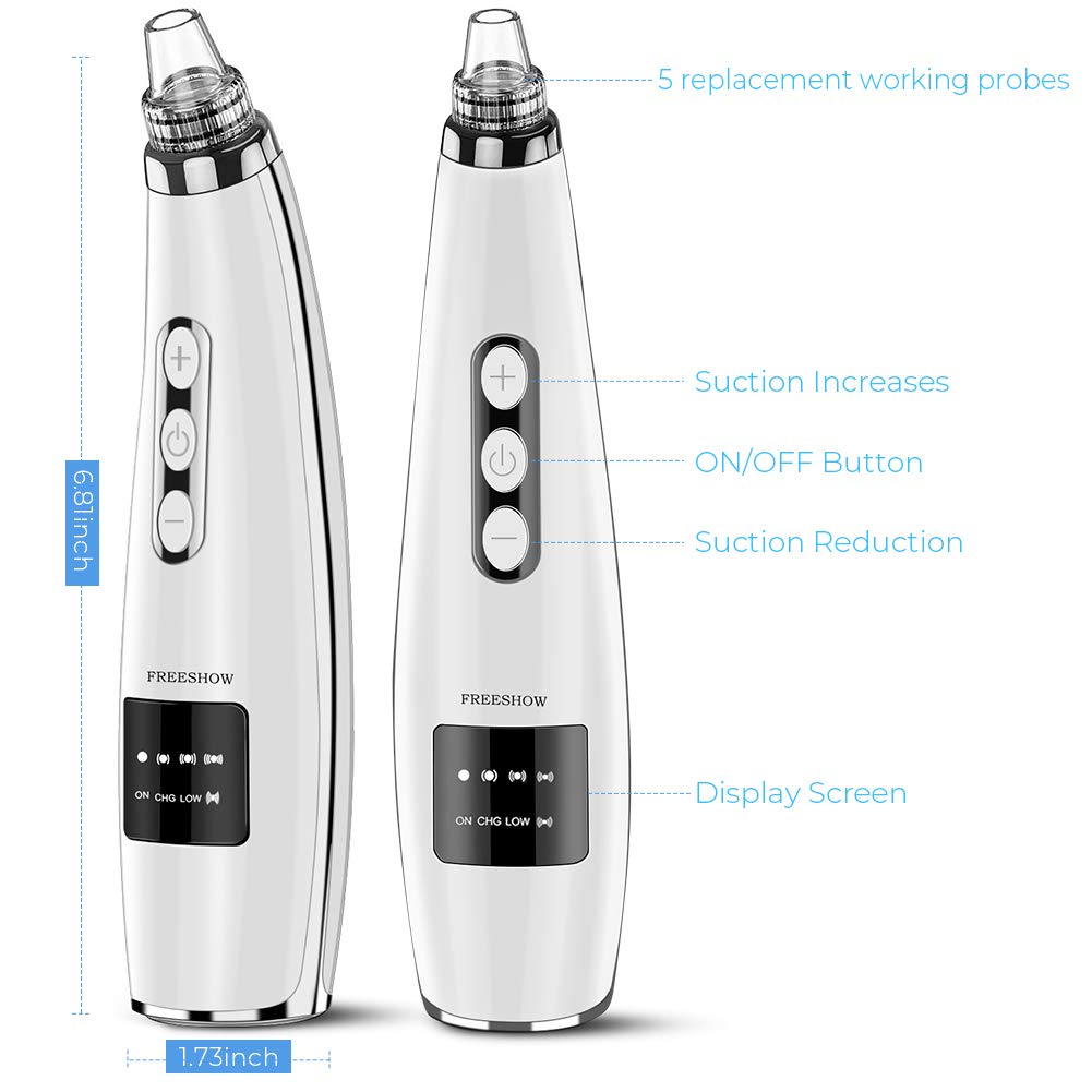 • ? Rechargeable & Portable LED Display– The pore vacuum cleaner has a built-in USB rechargeable battery , a single charge supports superior standby time.you can check the suction level and battery power on the LED display. FREESHOW blackhead remover is design for daily facial treatment, Suitable for traveling and convenient to carry, It is also a very wise choice as a gift.