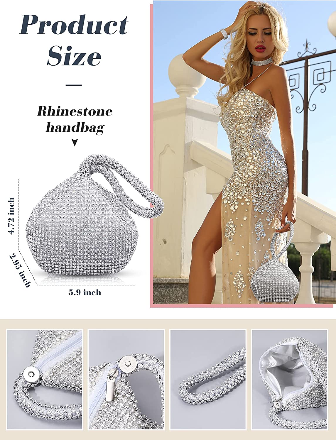• Widely applicable: the crystal rhinestone jewelry and handbag are dainty and exquisite matching accessories for your different costumes, which is applicable for evening party, wedding, bridal shower, birthday party, graduation, carnivals and other occasions