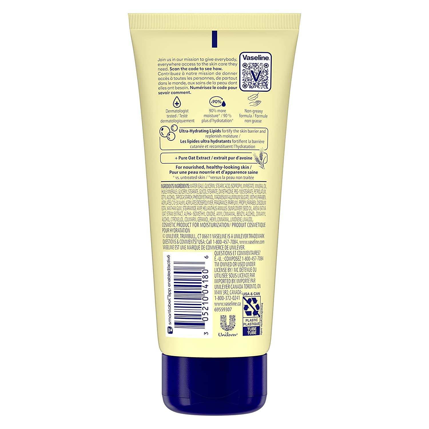 Vaseline Intensive Care Nourishing Moisture Lotion, with Ultra-Hydrating Lipids and Pure Oat Extract, moisturizes and nourishes for healthy-looking skin. This body moisturizer is clinically tested to provide 90% more skin moisture (vs. untreated skin).