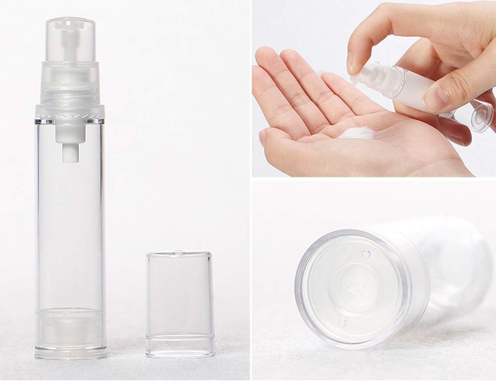 erioctry 12Pcs 15ML Empty Refillable Cosmetic Containers Cream Lotion Bottles Portable Clear Plastic Airless Vacuum Pump Bottle Sample Packing Toiletries Liquid Storage Vial Jars