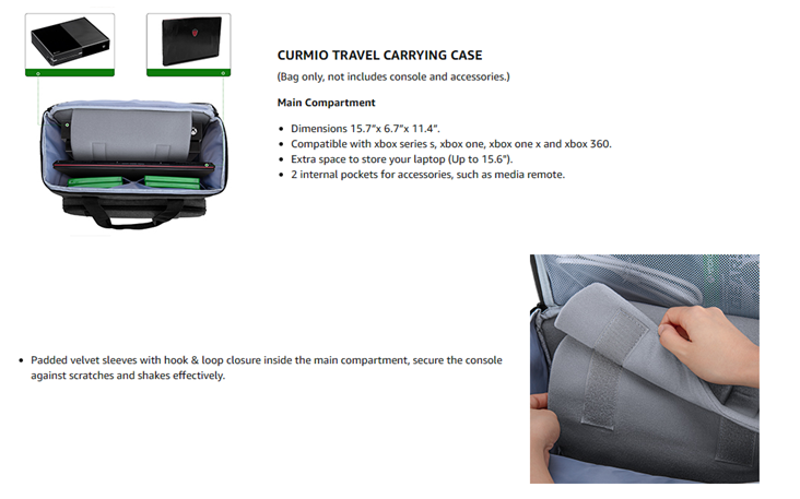LARGE COMPARTMENT: 15.7”x 6.7”x 11.4”. Roomy enough for your game console, extra space to store your laptop (Up to 15.6"). 2 internal pockets for accessories like, game discs, media remote, etc.