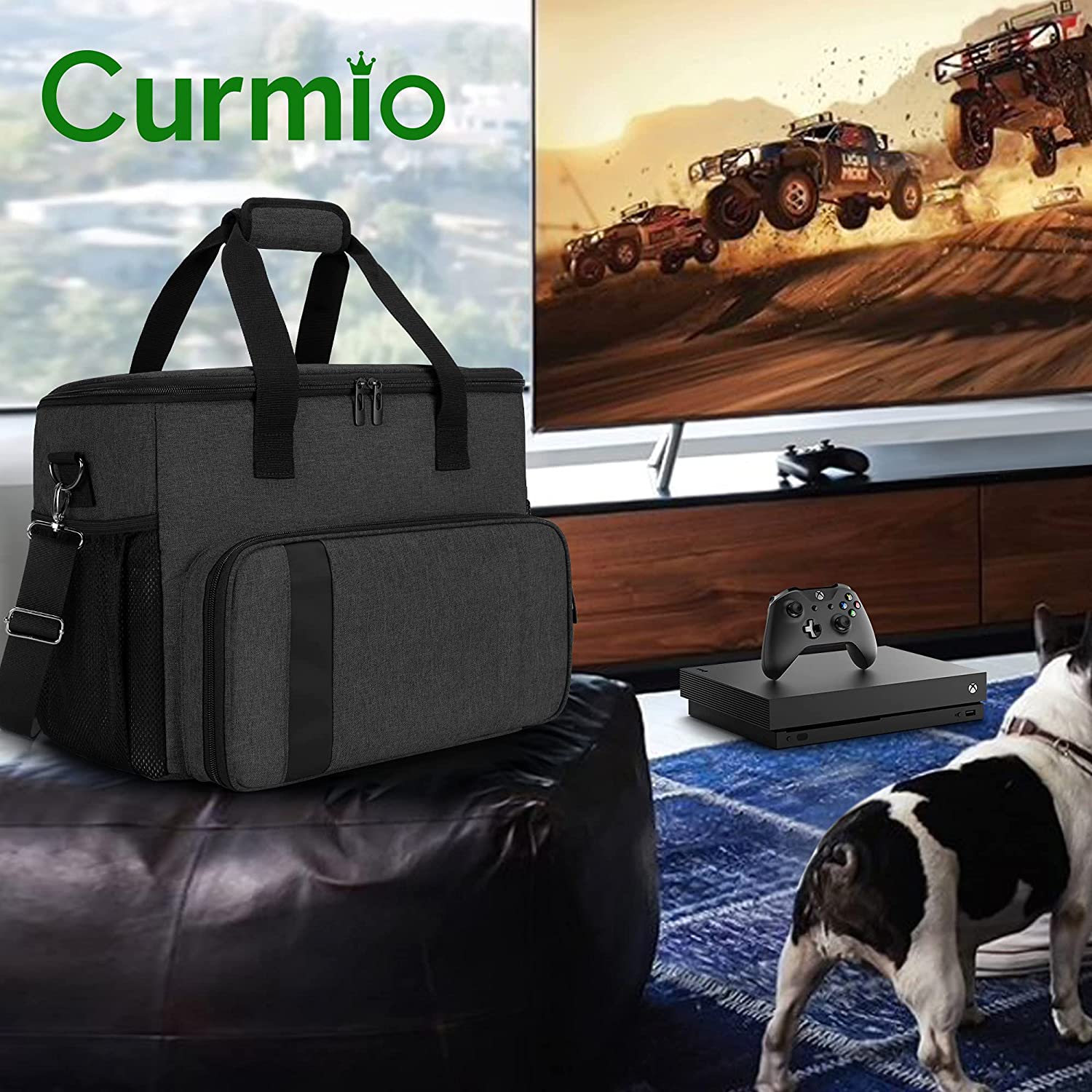 CURMIO Travel Carrying Case Compatible with PS5, PS4, PS4 Pro / Xbox Series S, Xbox One, One S, One X and Xbox 360, Game Storage Bag for Console, Controller and Accessories, Black (Bag Only, Patented