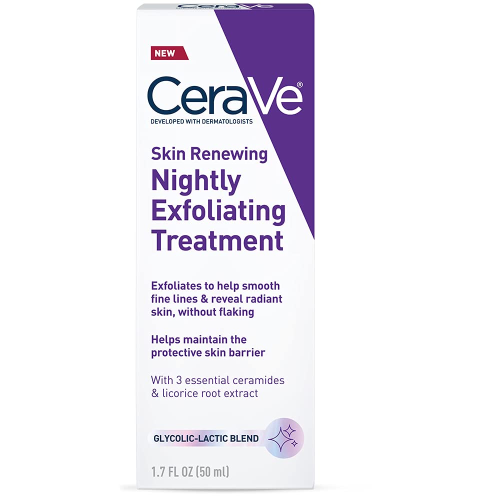 CeraVe Skin Renewing Nightly Exfoliating Treatment | Anti Aging Face Serum with Glycolic Acid, Lactic Acid, and Ceramides| Dark Spot Corrector for Face | 1.7 Oz