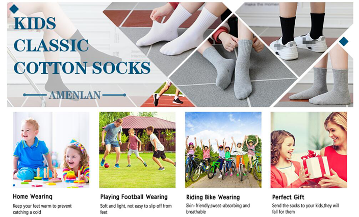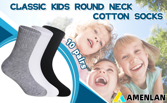 CLASSIC AND SIMPLE DESIGN- Simple and exquisite black white and grey design, which can be easily matched with children's different color clothes, suitable for boys and girls. These cotton socks are durable and can be used for a long time, and can be worn all year round.