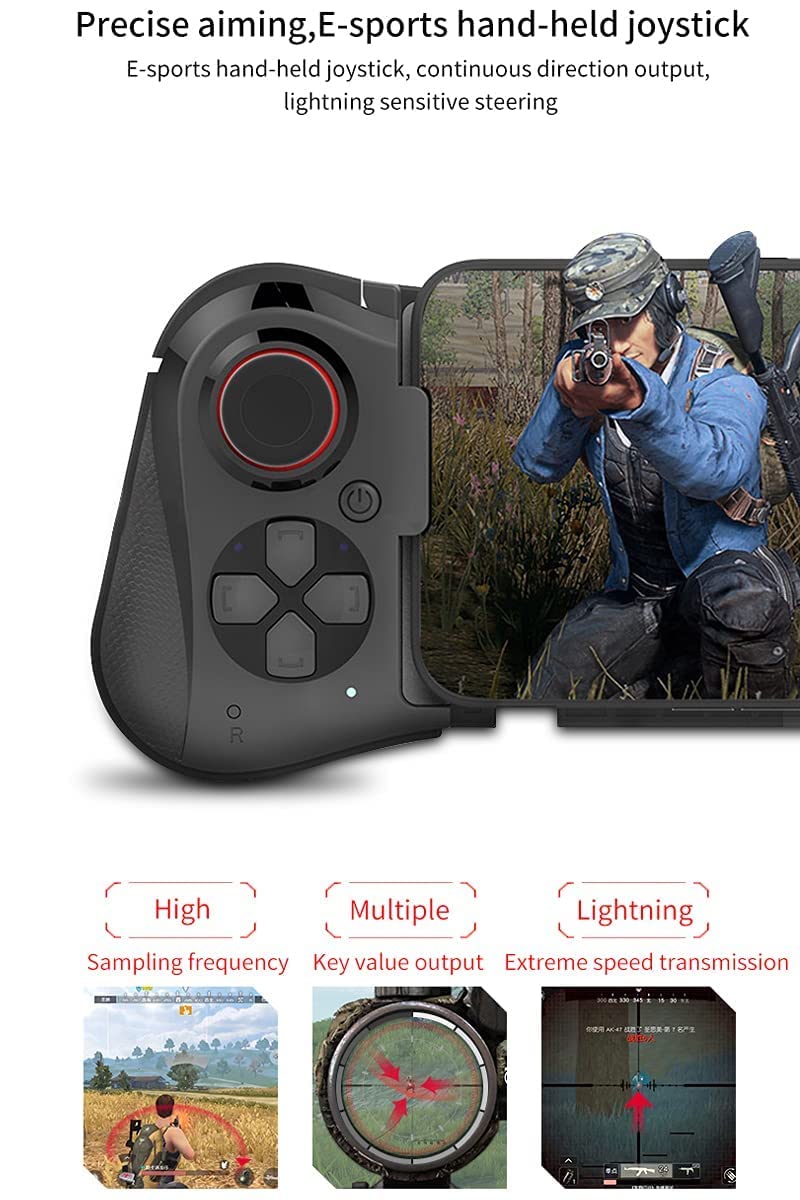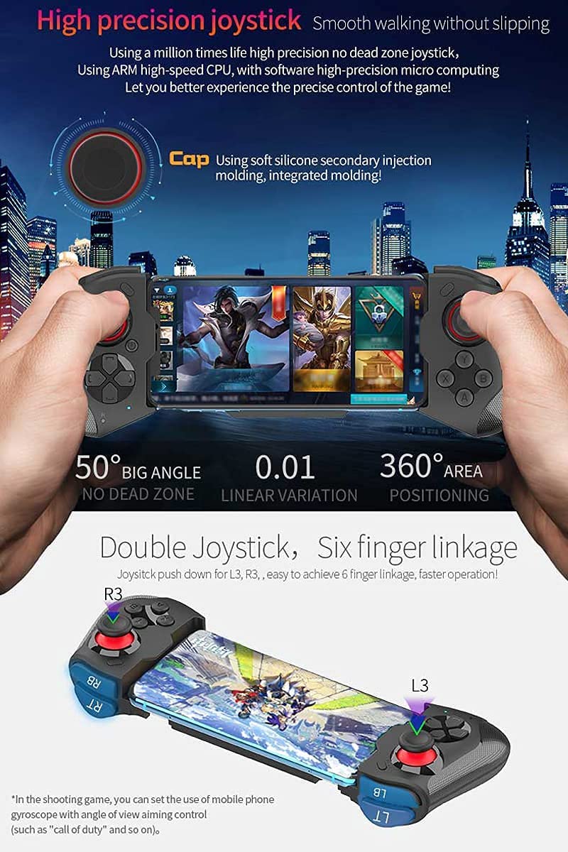 【Works for iOS 14.0+】Mobile gaming controller for any iPhones. For iPhone 14, 14 Plus, 14 Pro, 14 Pro Max, iPhone 13, iPhone 13 mini, iPhone 13 Pro, iPhone 13 Pro Max, iPhone 12, 12 Pro, 12 Pro Max, X, XR, XS, XS Max, 11 Pro, 11 Pro Max, 11, 7Plus, 8Plus and more. The gaming gamepad also works for iPad, iPad Pro and iPad Air, but the controller telescoping stand can be stretched to be compatible with up to 7.2-inch iPhones, so iPads over 7.2 inches cannot be placed on the controller stand.