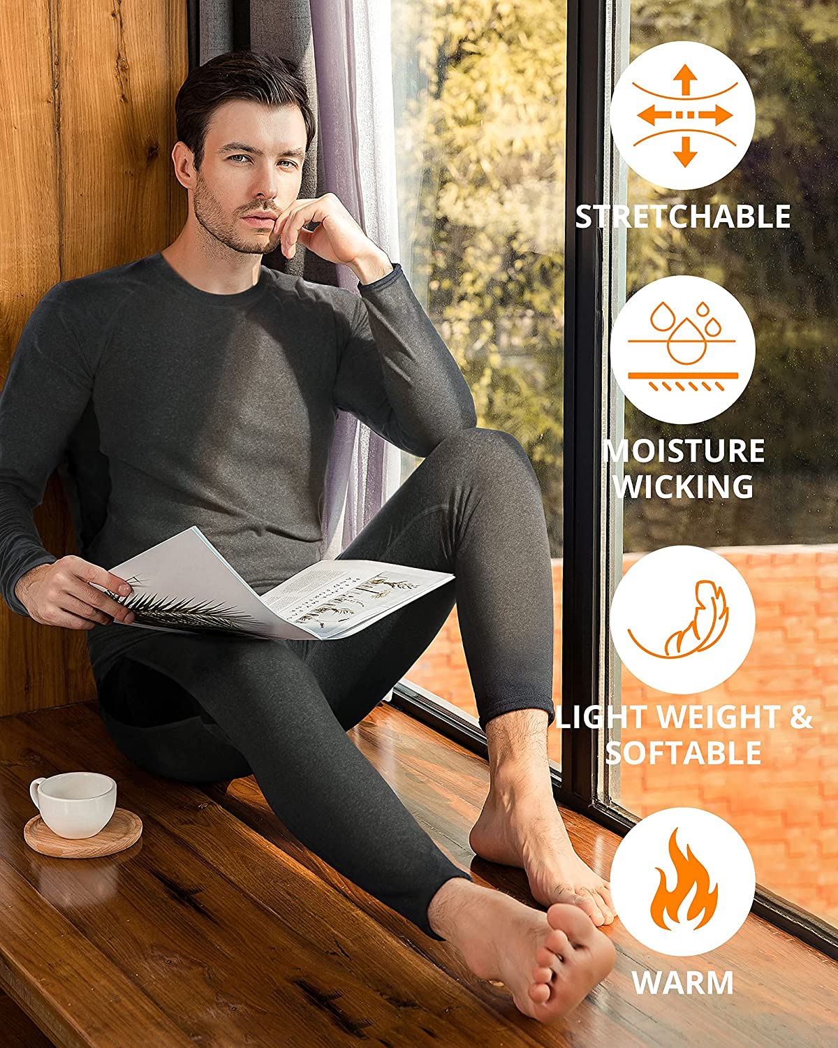 • 【FOR All Activities】Mens thermal underwear tops and long johns pants perfect for base layer use underneath formal or casual attire winter, or they can be worn as comfy pajamas on chilly nights. When going out to jogger, run, bike, snowboarding,skiing,hiking,hunting wear this thermal set under your clothing to keep warm and cozy in cold winter or bad weather.