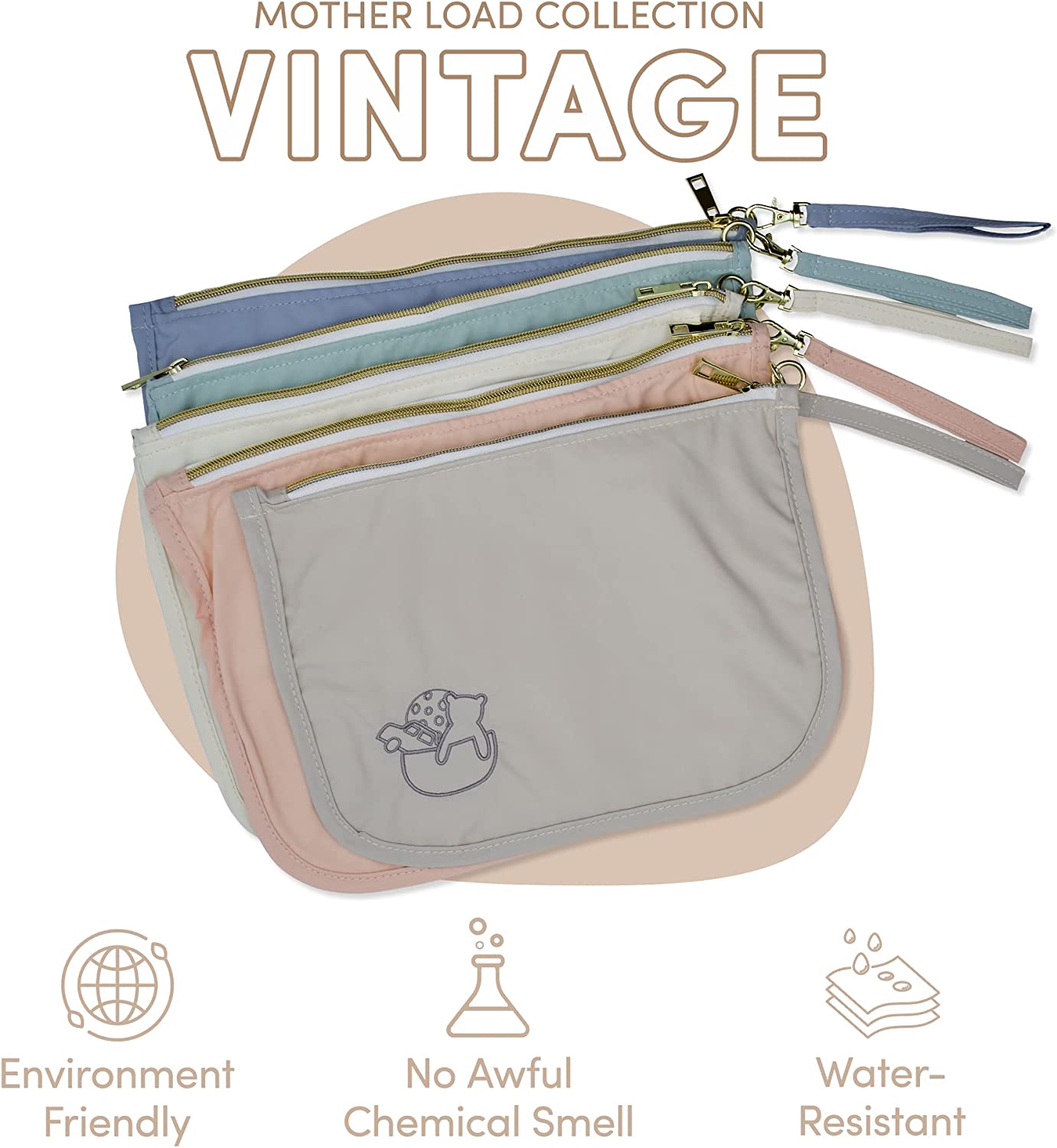 Mother Load - Diaper Bag Organizing Pouches, Small Organizing Bags, 5-Piece Set of Embroidered Diaper Bag Pouches, Vintage Pastels