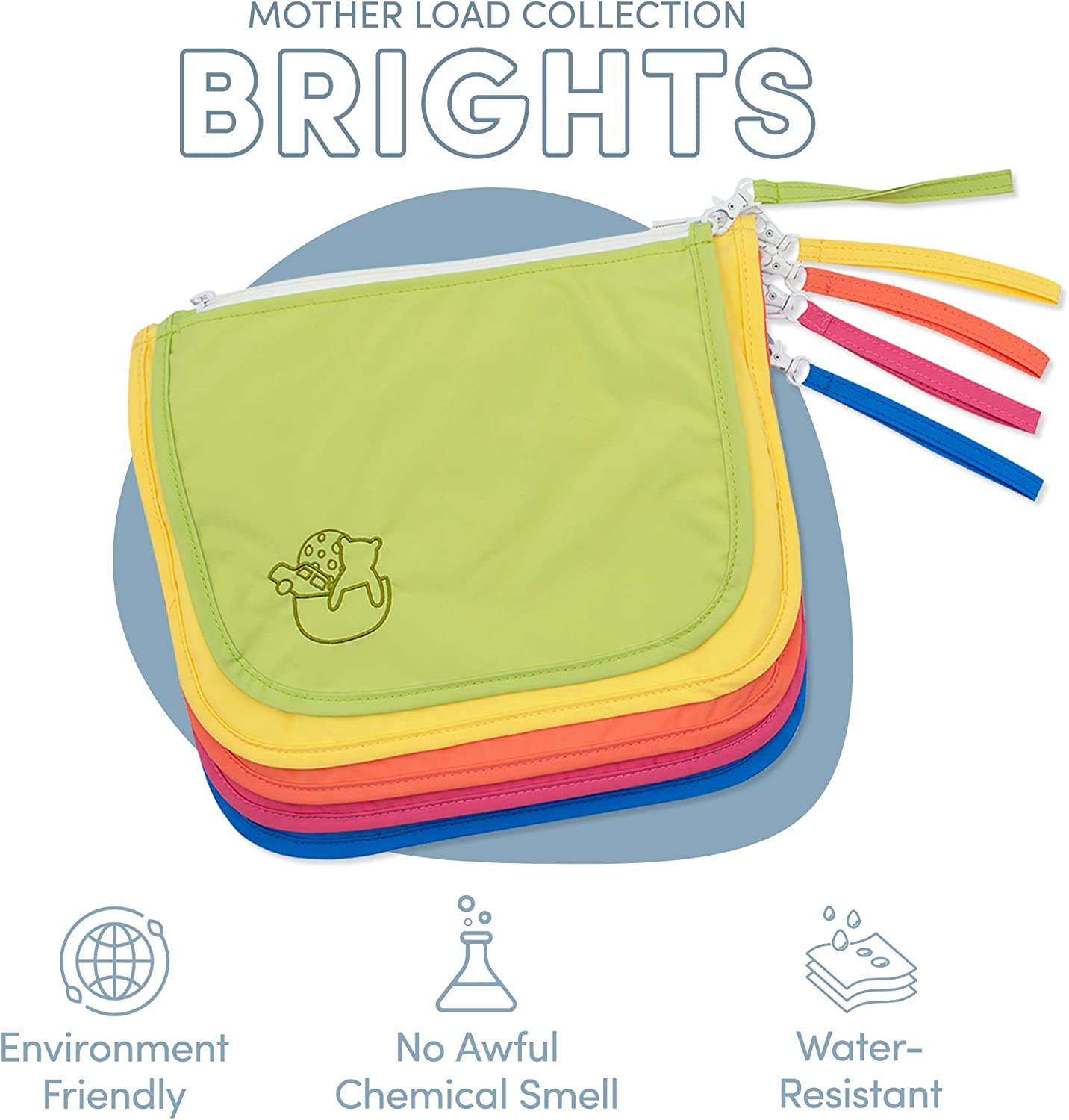 • Ultimate On-the-go Set - Gone are the days of lugging bulky diaper bag storage pouches into the grocery store! Grab the Blue Diaper Pouch - small, lightweight, & conveniently loaded with diapers and wipes. Eating out? Grab the yellow reusable snack bag and blue diaper bag pouches - done! Mother Load makes traveling with a toddler easy! Each diaper clutch has a double stitched sturdy wristlet. Also, the wet bag makes going to the pool a breeze!