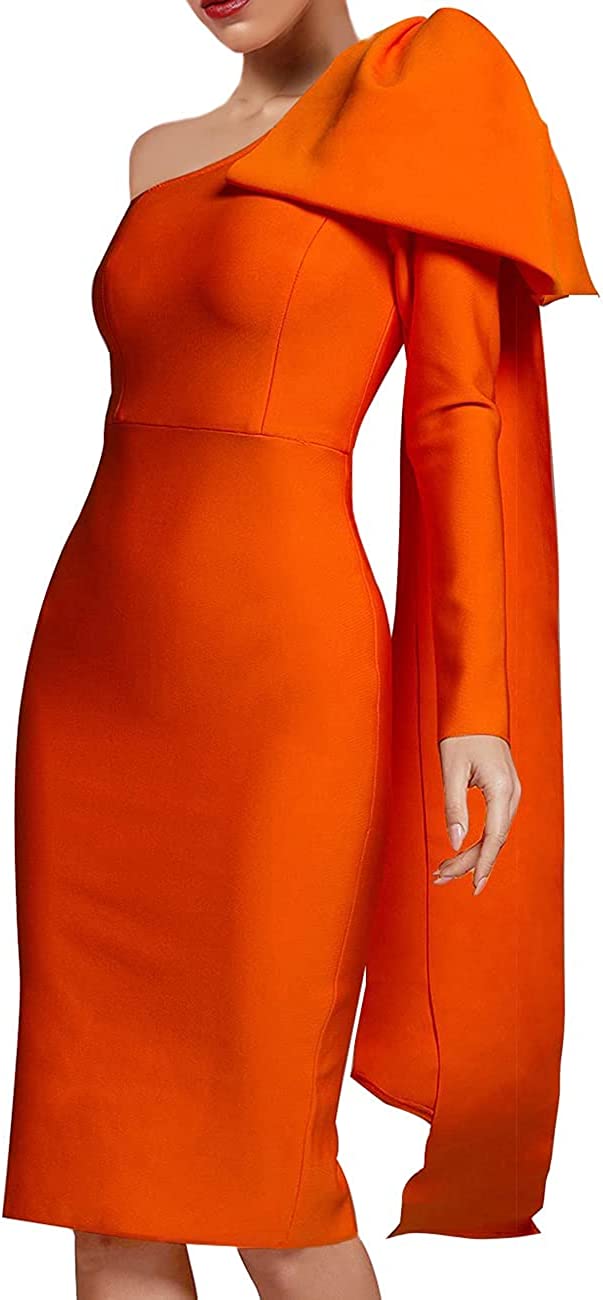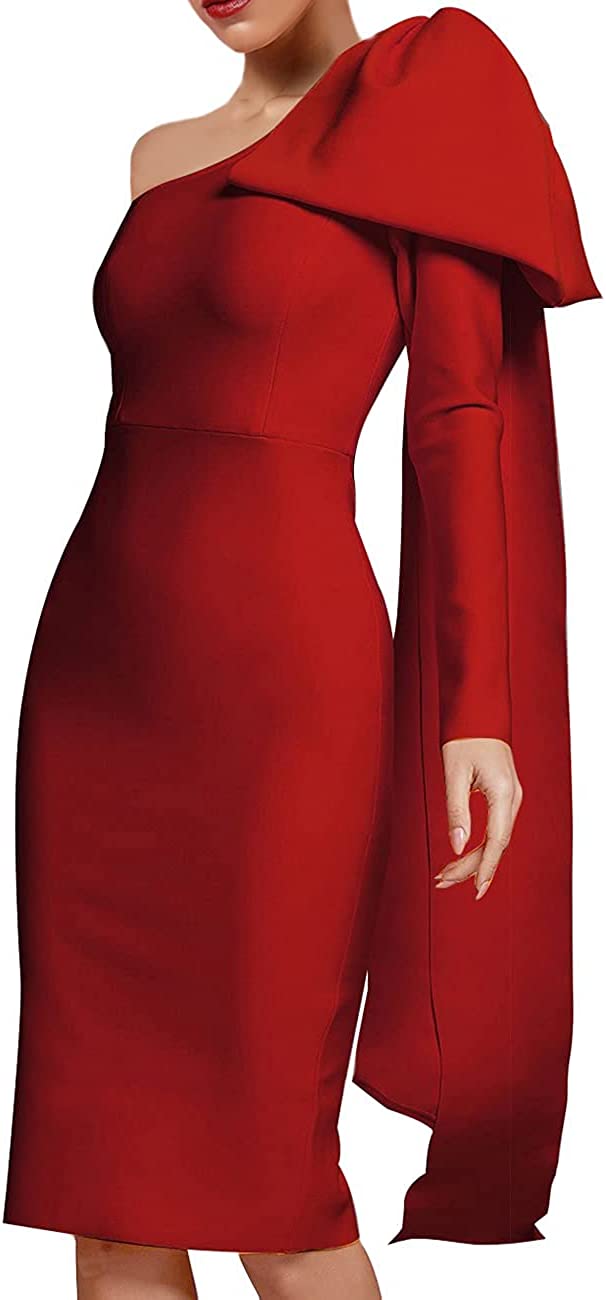 • Features:This bandage dress features long sleeve,one shoulder with big gorgeous bowknot,bodycon tight fit,flattering knee length cut