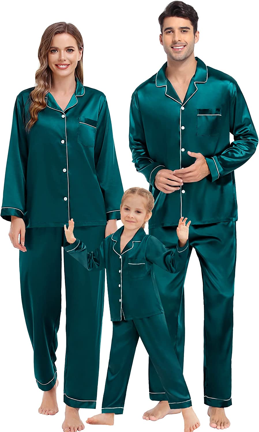- ? SILKY & WARM: Our Christmas family matching pajama sets are made of lightweight Silk Satin Fabric(95% Polyester, 5% Spandex), which is soft, breathable, smooth, and skin-friendly, which can provide your family enjoy happiness & warmth time and have a sound sleep.Family pajamas matching sets come in SIZES FOR EVERYONE to create a picture-perfect look during the holidays.