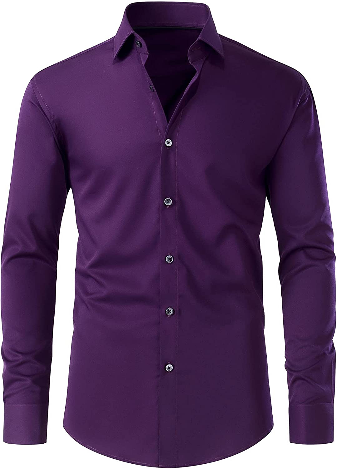Gollnwe Men's Slim Fit French Cuff Stretch Bamboo Solid Dress Shirt