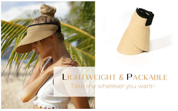 Portable:This breezy straw visor rolls up and secures with an elastic band for easy storage in your tote or trunk;
