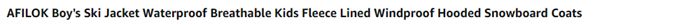 AFILOK Boy's Ski Jacket Waterproof Breathable Kids Fleece Lined Windproof Hooded Snowboard Coats
