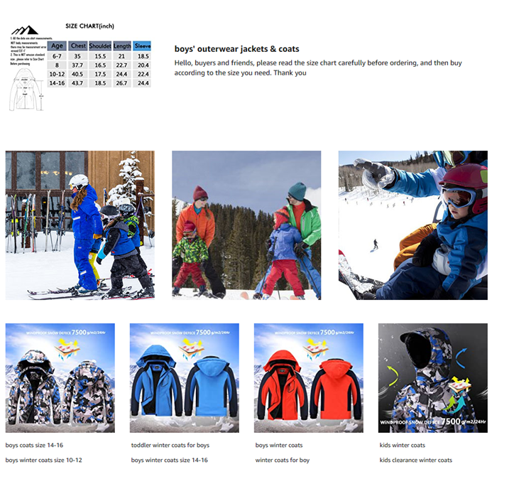 • WINTER WARM SNOW COAT : go skiing. Give your kids the best winter coat for the mountain and the playground with the AFILOK Boys Mountain Waterproof Ski Jacket. With a water and windproof shell and a redesigned hood, the boys Mountain Waterproof Ski Jacket is built for winter.