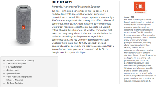 • All-Purpose Bluetooth Speaker -Take the party everywhere with Flip 4, a portable Bluetooth speaker that delivers powerful stereo sound. With durable, waterproof fabric, this speaker features up to 12 hours of continuous, high-quality audio playtime.