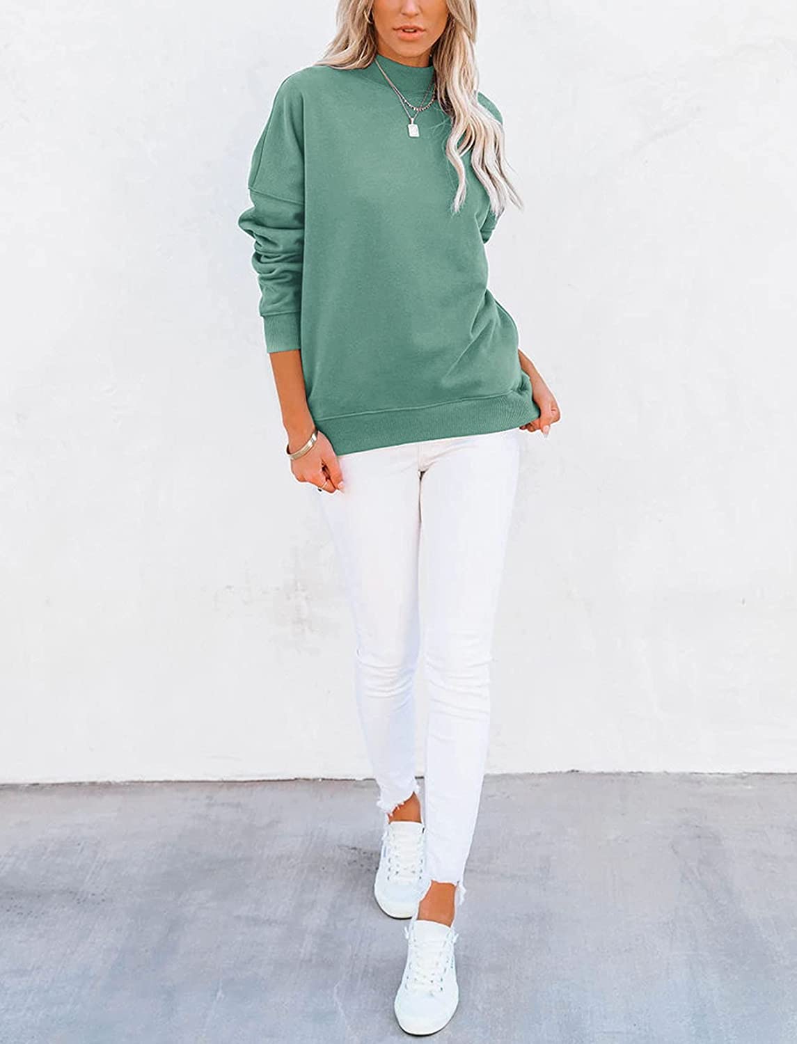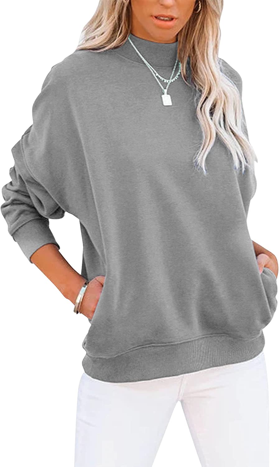 Minclouse Women's Casual Long sleeves Sweatshirt Tops Basic Loose Fit Mock Turtleneck Lightweight Tunic Pullover With Pocket