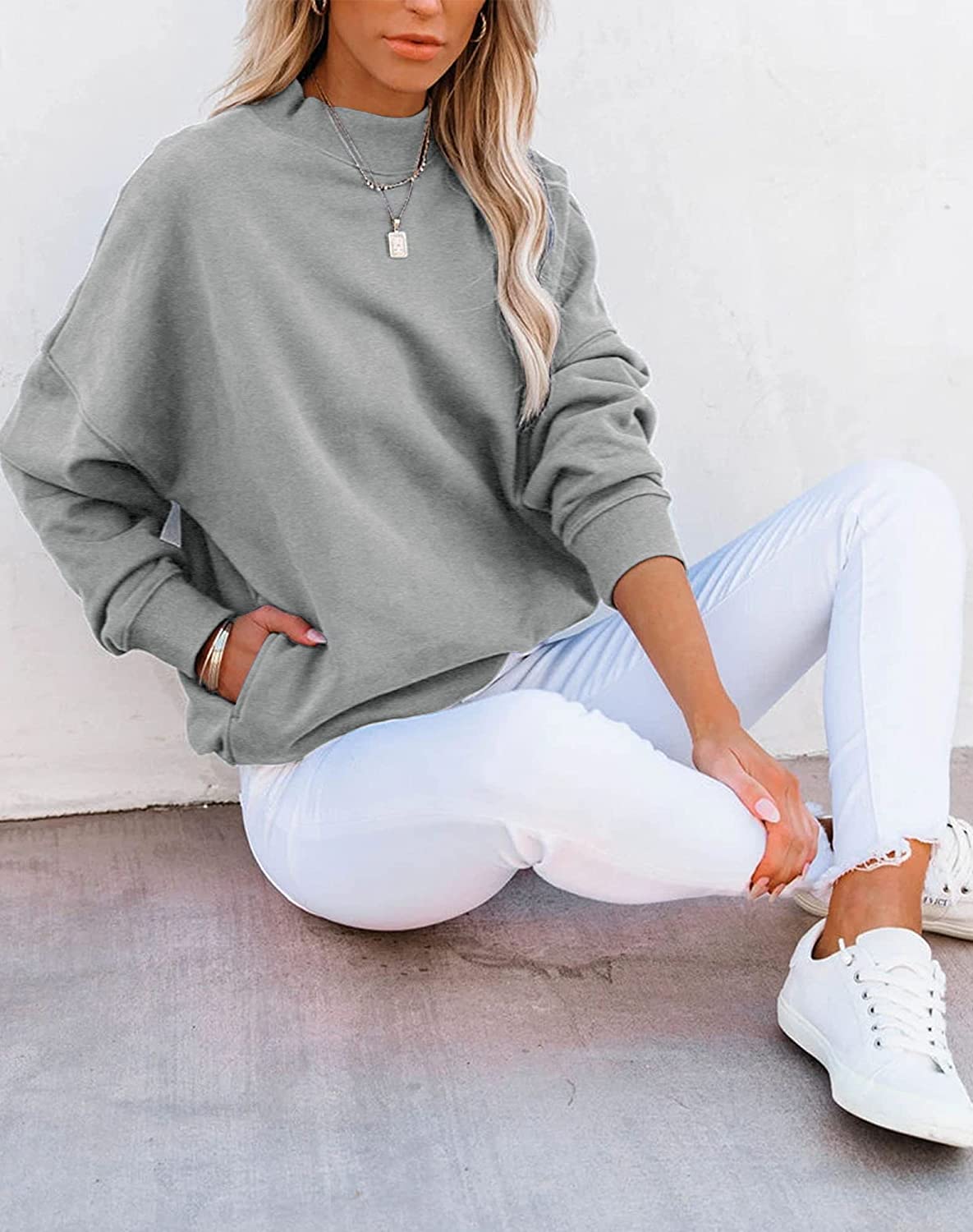 • Features: Lightweight pocketed sweatshirt, basic solid color top, mock turtleneck, casual relaxed fit.