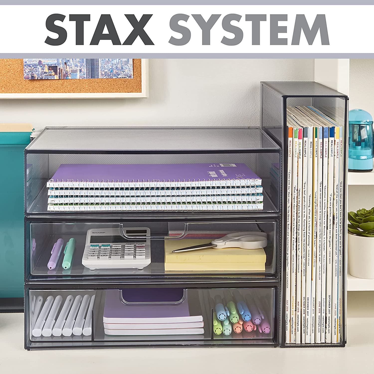 STORi STAX Plastic Stackable Organizer Drawer in Classic Grey | 12.5-inches Wide | Organize Office Desk Accessories and Sort Letter-Size Paper | Made in USA