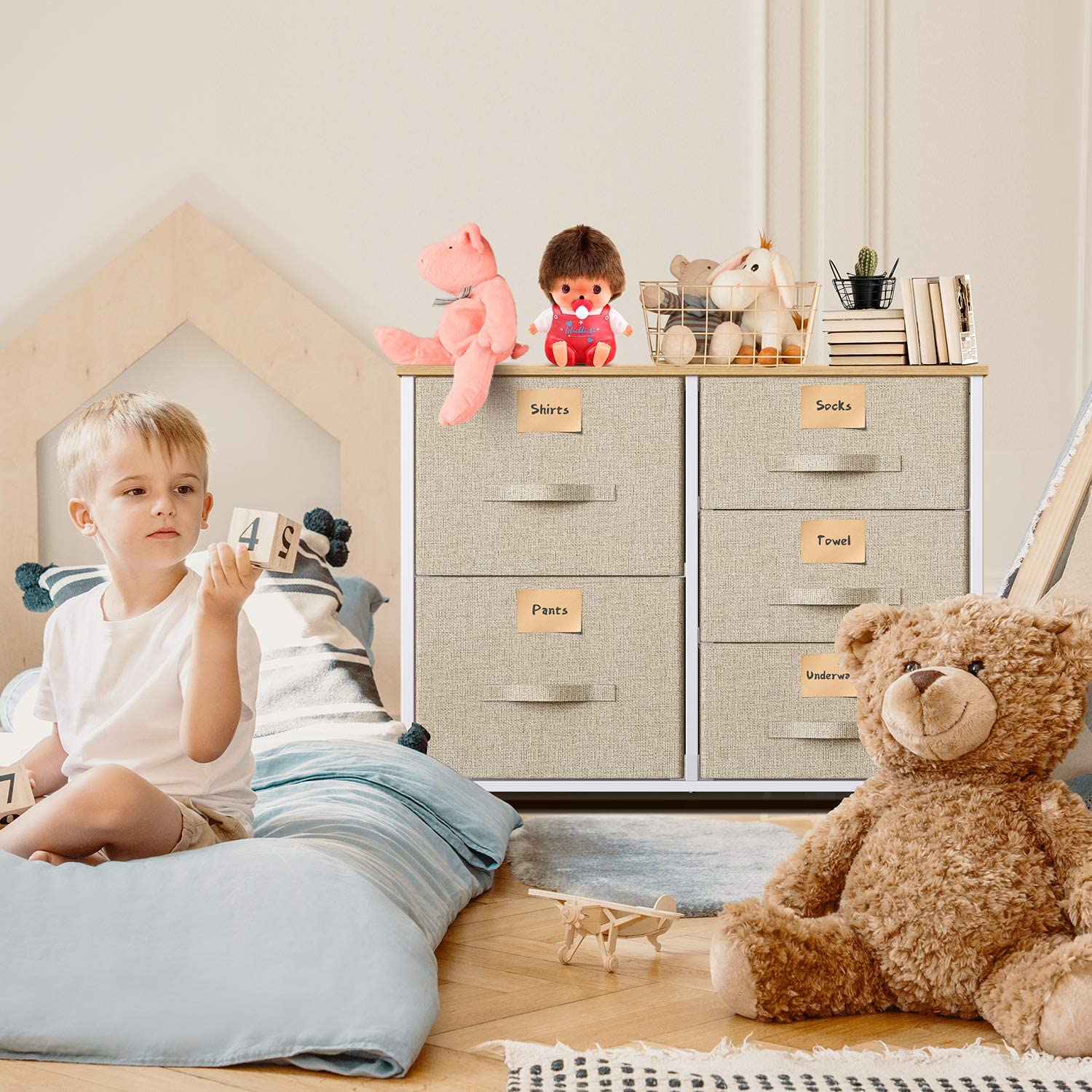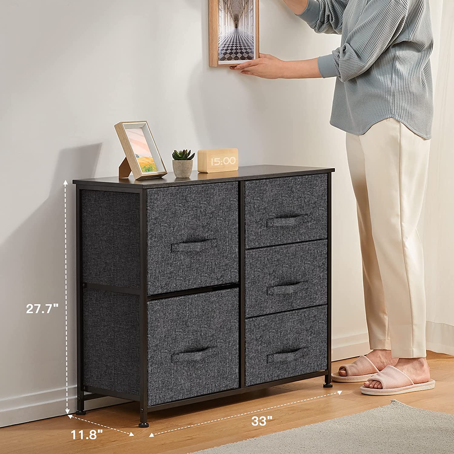• PRACTICAL AND PORTABLE DRESSER: Lightweight organizer unit is designed with solid wood board on top for added sturdiness and durability, you can move the dresser conveniently to anywhere in your room; Easy to assemble and disassemble, no worries when changing your house or apartment.