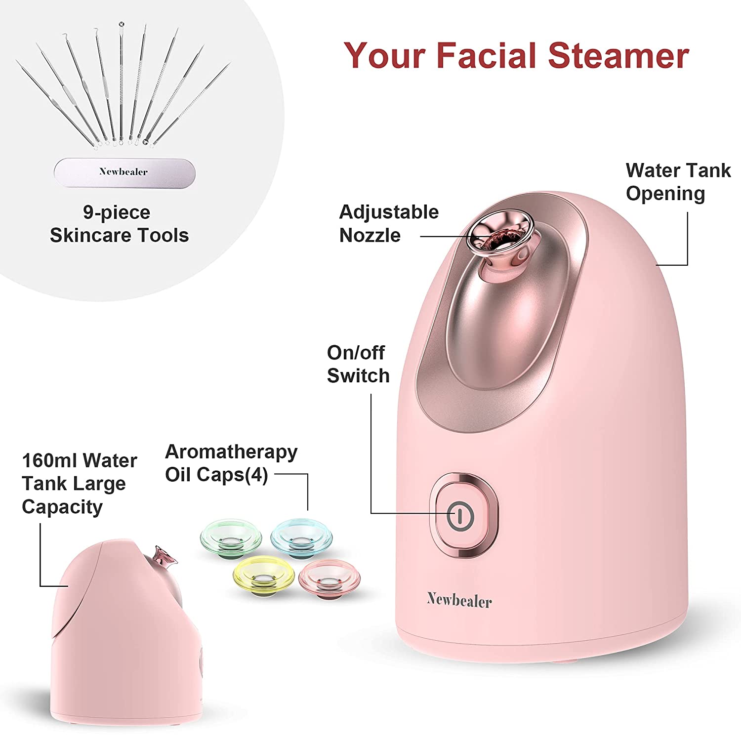 [Untroubled and Convenient Usage] For 20 minutes, a person can enjoy a relaxing warm mist without spitting steam like as compared to other steamer with the help of home facial humidifier steamer develop full-powered steam within 30 seconds by clicking 1 key on the button. This happens after adding water to its 5.4 oz (160ml) water tank. It helps providing radiant and hydrated skin and clean the pores.