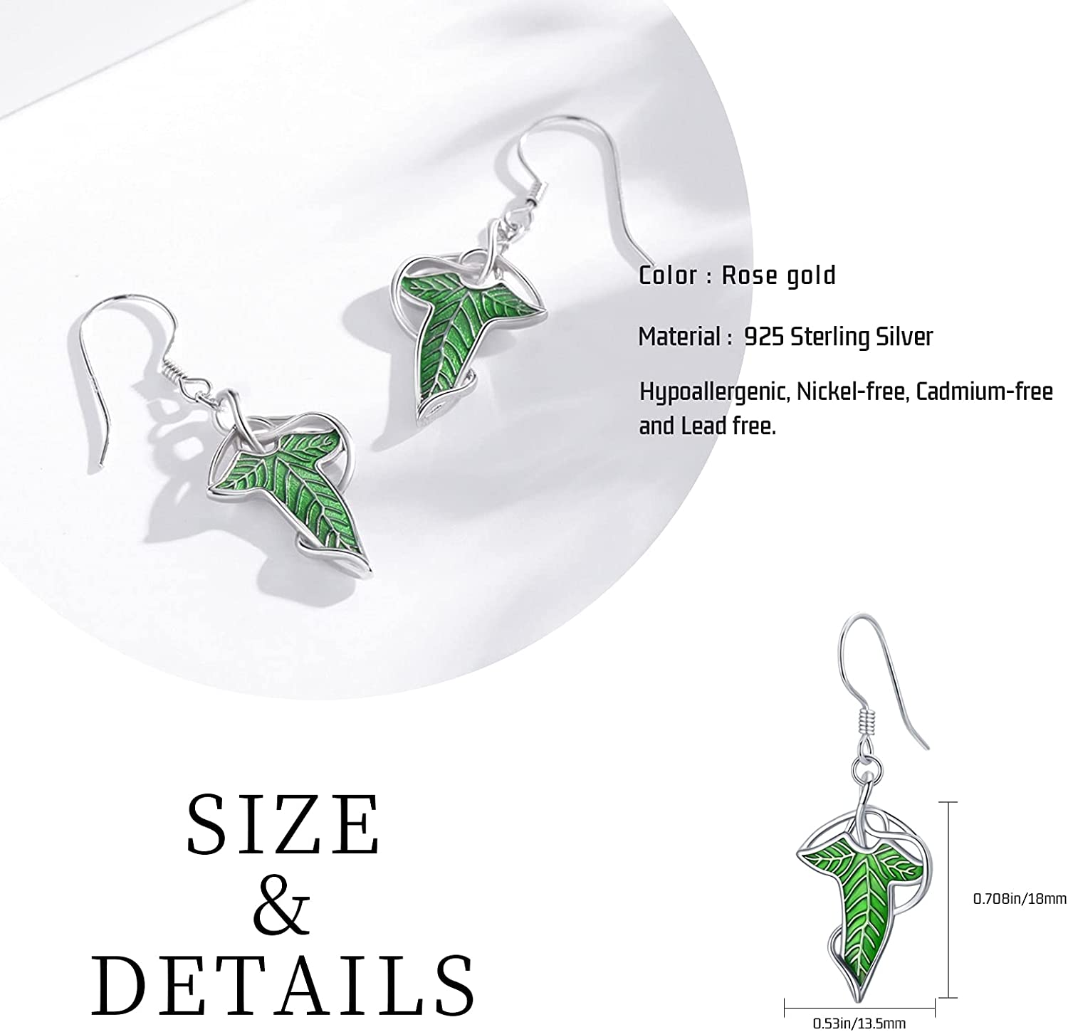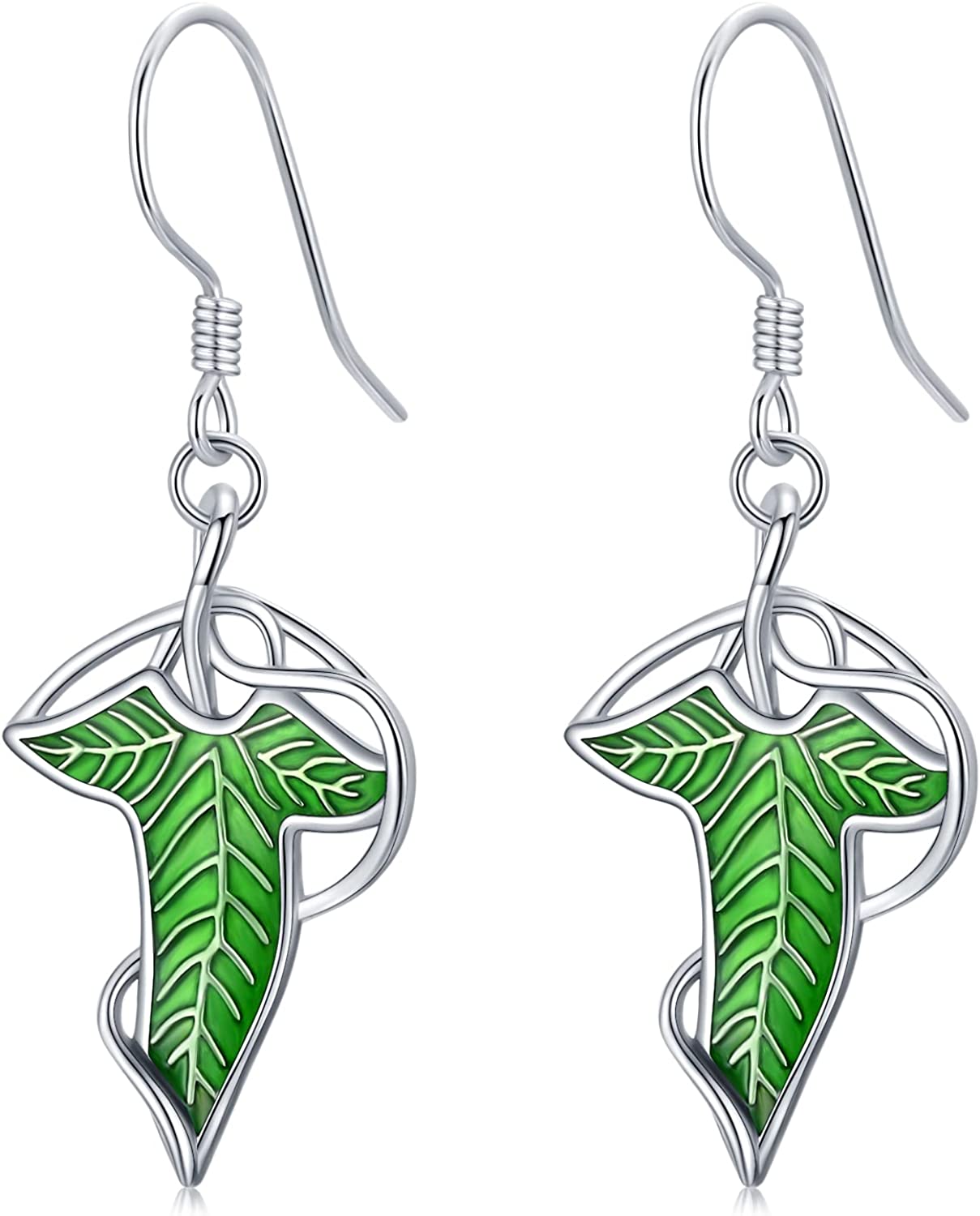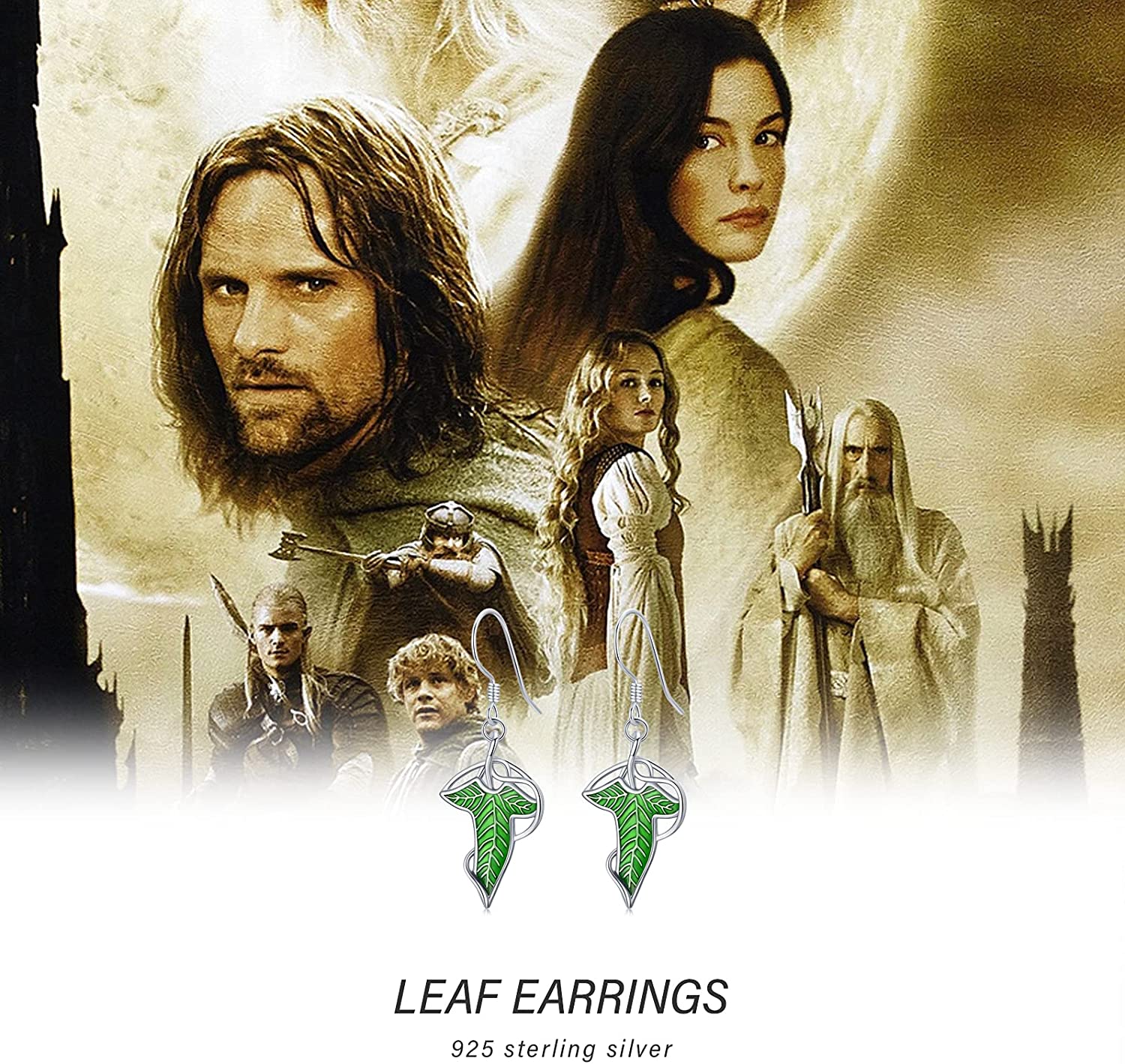Lord of The Rings Jewelry 925 Sterling Silver Green Leaf Drop Earrings Lord of The Rings Gifts for Women Girls